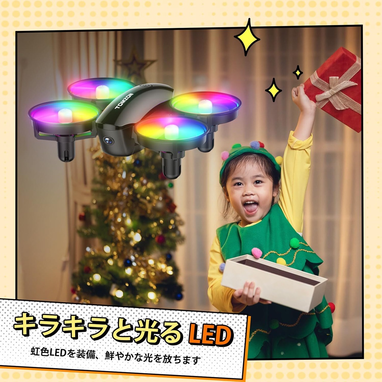 Tomzon ドローン カメラ付き LEDライト 100g未満 子供向け 1080P HDカメラ トイドローン 放り投げ飛行 宙返り サークル飛行 高速回転 ワンキー離陸 ヘッドレスモード スピード3段階 モード1/2切替可能 光るおもちゃ 初心者 室内向け 小型 技適マーク付き 誕生日 プレゼント 24ヶ月付 A23W