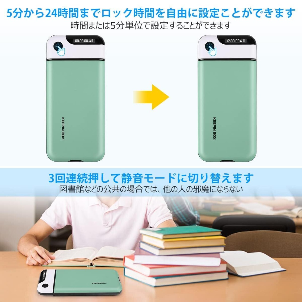 【静音モード&持ち運びやすい】-ロックボタンを3回連続押して静音モードに切り替えできます。図書館などの公共の場合では、他の人の邪魔にならない。タイムロックボックス内寸は166×85.5×14 mmで、ほとんどのスマートの機種を適用します。外寸は205×95×20 mmで、コンパクトで持ち運びやすく、カバンに入れておけばいつでも使うことができます