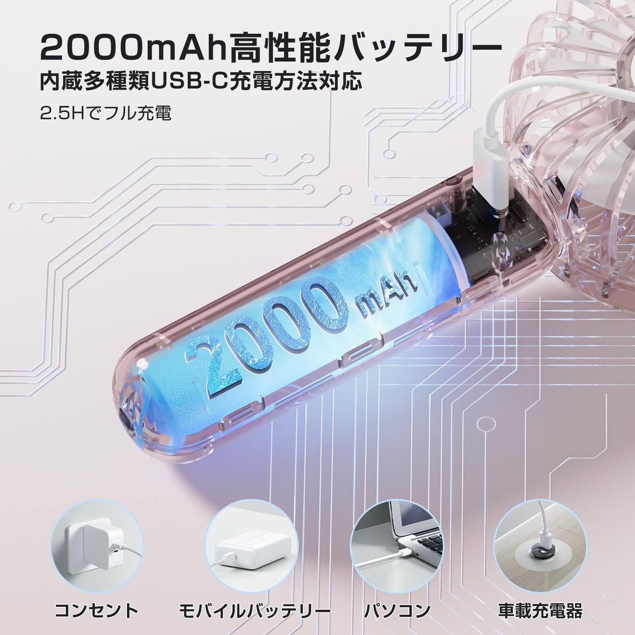 HAGOOGI ハンディファン 携帯扇風機 LEDライト付き 20dB静音 クリアデザイン 3段階風量調節 強力 USB Type-C 手持ち扇風機 小型 ハンディ扇風機 ストラップ付き 熱中症対策 オフィス/アウトドア/通勤 (クリアプラムピンク)