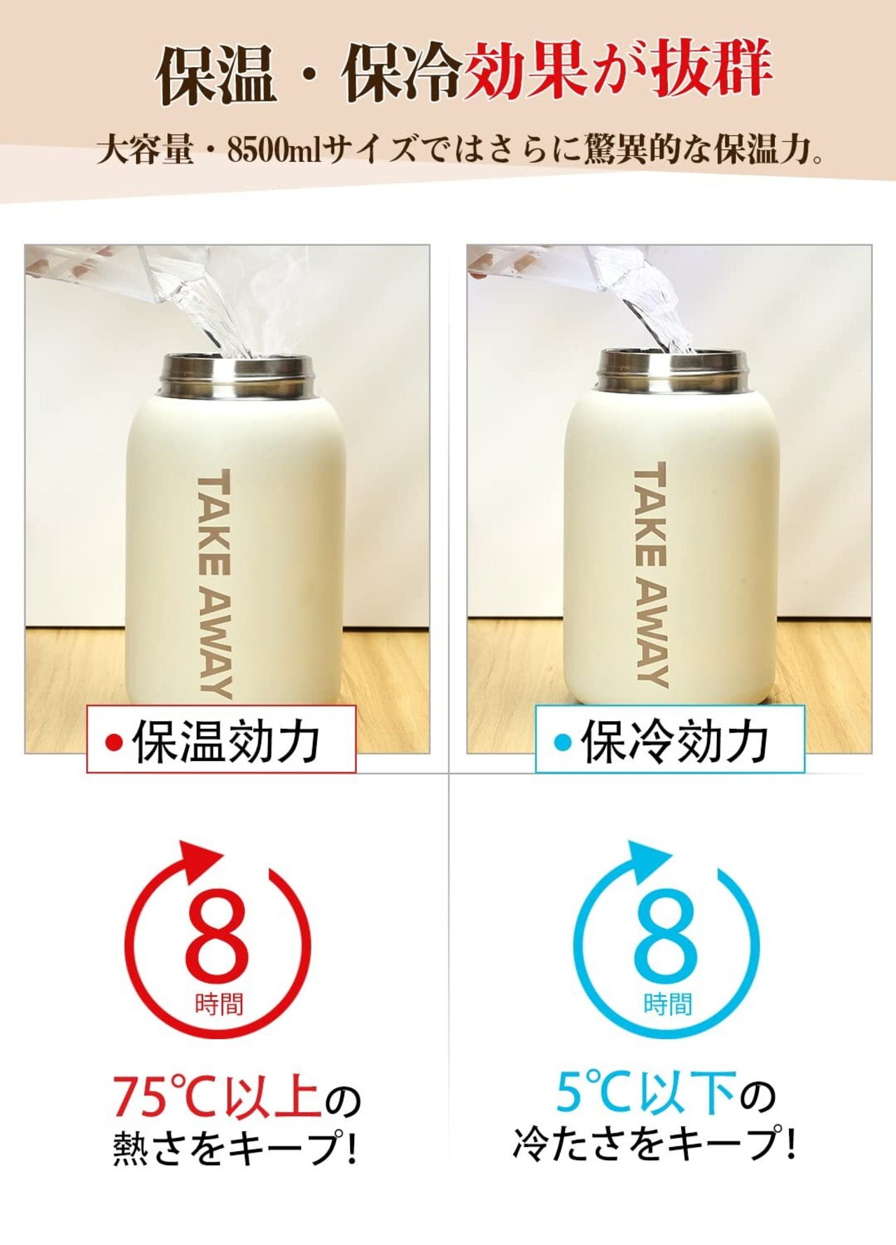 【保温・保冷効果が抜群】最高温度を保持し、24時間冷却し、保温効力:75度以上(8時間)/保冷効力:5度以下(8時間)。保温効力:59度以上(12時間)/保冷効力:12度以下(12時間)。保温効力:46度以上(24時間)/保冷効力:16度以下(24時間)。飲料、コーヒーを冷たいまま長時間持ち運べ、いつでも美味しいアイスコーヒーにも、ホットコーヒーにも楽しめます。