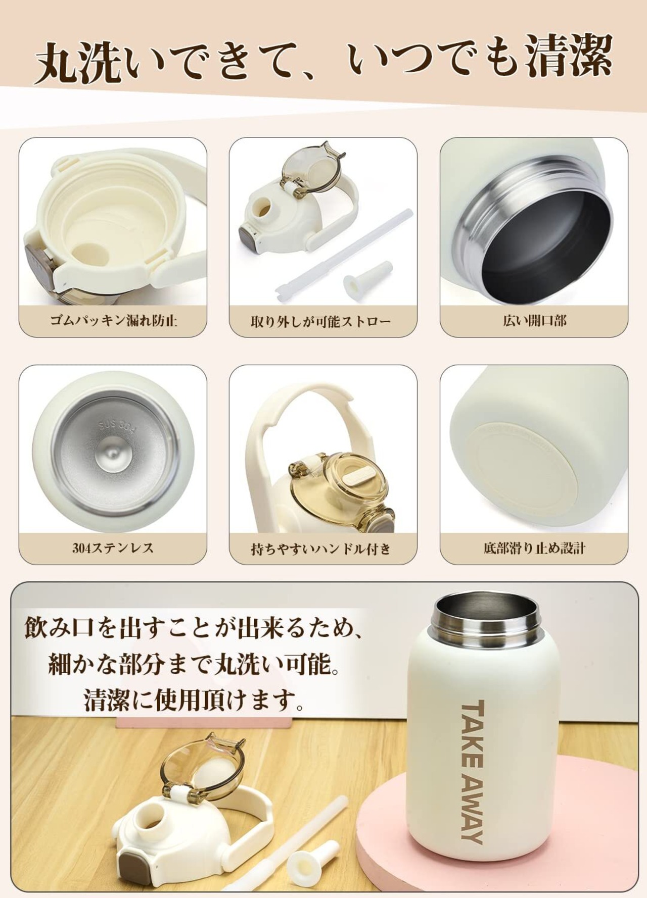 【ロック・取り外せるストロー付き】安全なロックが施されており、ほこりや漏れを防ぎます。ロックを推して片手でオープンできます!取り外せるストローがあり、頭を上げないでも楽に水を飲めます!丈夫で、使用で変形することがありません。