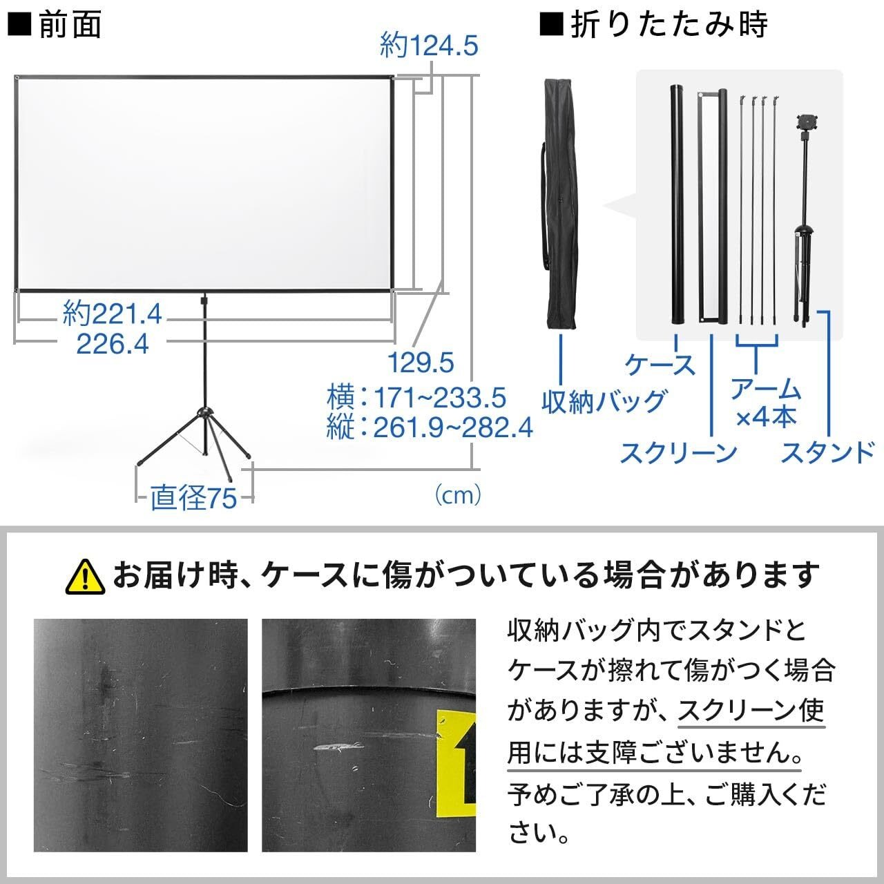 サンワダイレクト プロジェクタースクリーン 100インチ 360度回転 自立式 三脚 4K対応 16:9 縦向き設置 専用ケース付 高さ調整 100-PRS024
