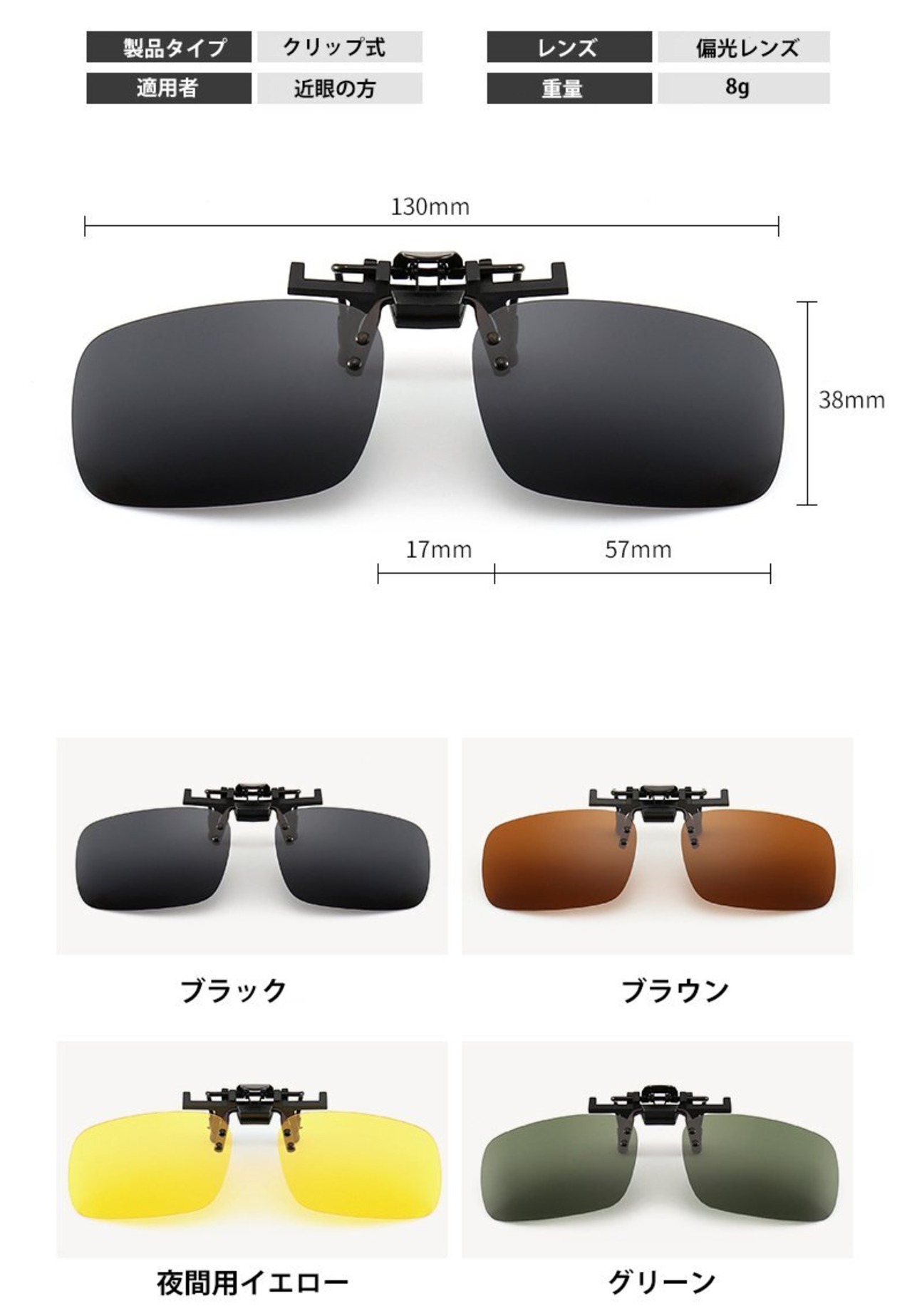 わずか9gの超軽量、最も快適なポラロイド厚型偏光レンズは、 強い耐久性とを持ち、より軽量です。お使いの眼鏡にワンタッチで取り付け可能、跳ね上げ式(クリップオン)なのでトンネルなど暗い所に入る時はい取り外す必要はございません。