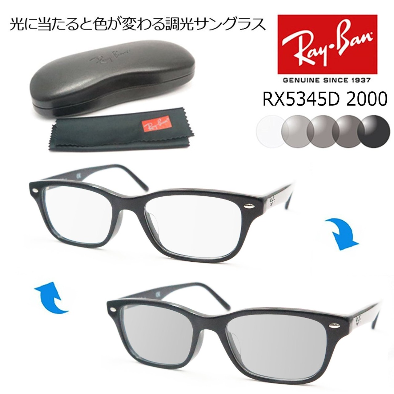 【色が変わる 調光メガネセット】レイバン Ray-Ban RX5345D 2000 & HOYA 調光サンテック【グレイ】(調光レンズ サングラス)度なし ブラックセル