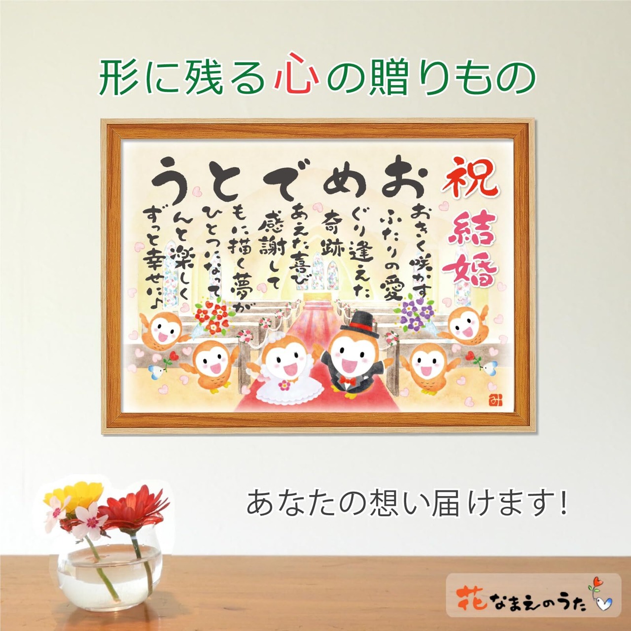 【結婚お祝い】額入り(A4) ウエディング 婚約 メッセージ ポエム額 ウエルカムボード 贈り物 幸せふくろう チャペル