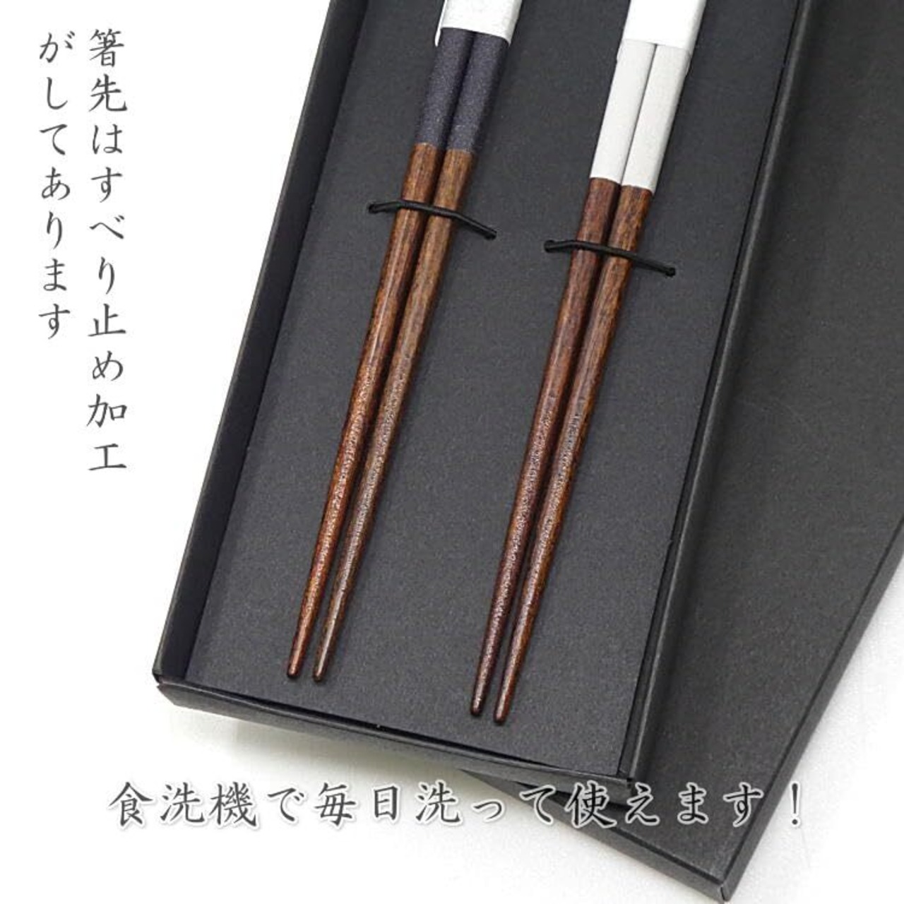 細身 滑らない 長持ち 夫婦箸 23cm 抗菌 食洗機OK 若狭塗 結婚祝い/普段使い/プレゼント 細身エレガント やさしい箸 黒箱