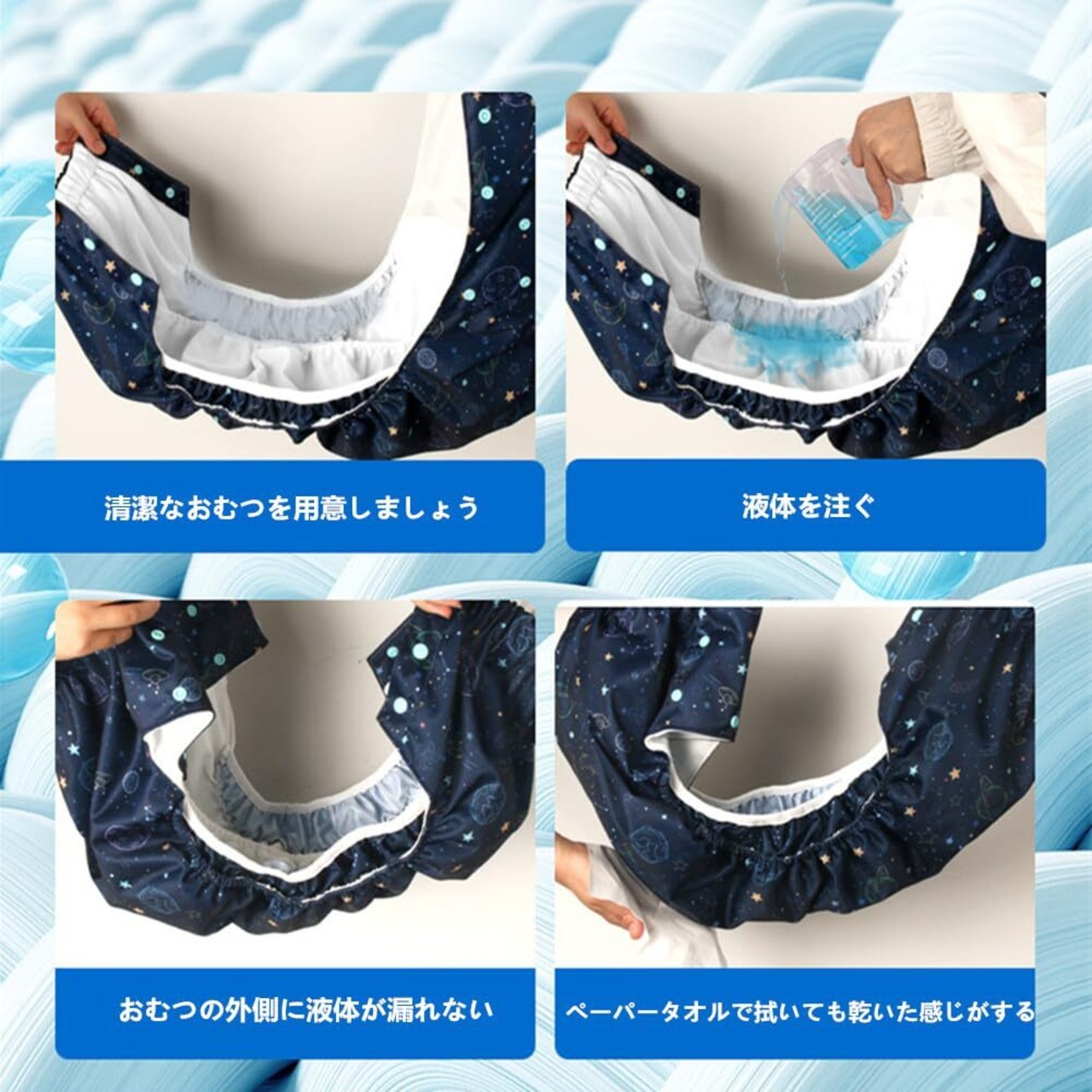 【吸水性抜群】超強力吸水設計でおむつは水分をよく吸収し、繰り返し洗濯でき、洗濯後も乾きやすく、柔らかな風合いを保ちます。 股間にフィットして横モレを防ぐ二重股構造で、熟睡時も横モレの心配がありません。