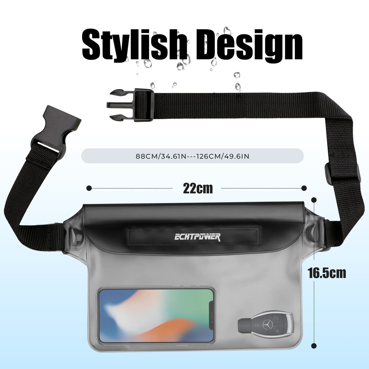 ECHTPower 防水ポーチ 2個セット IP68 大容量 軽量 小物収納 調整可能ベルト付き スクリーンタッチ可能 ウエストバッグ 海/プール/ビーチ/アウトドア/スイミング/釣り/ボード/海水浴対応