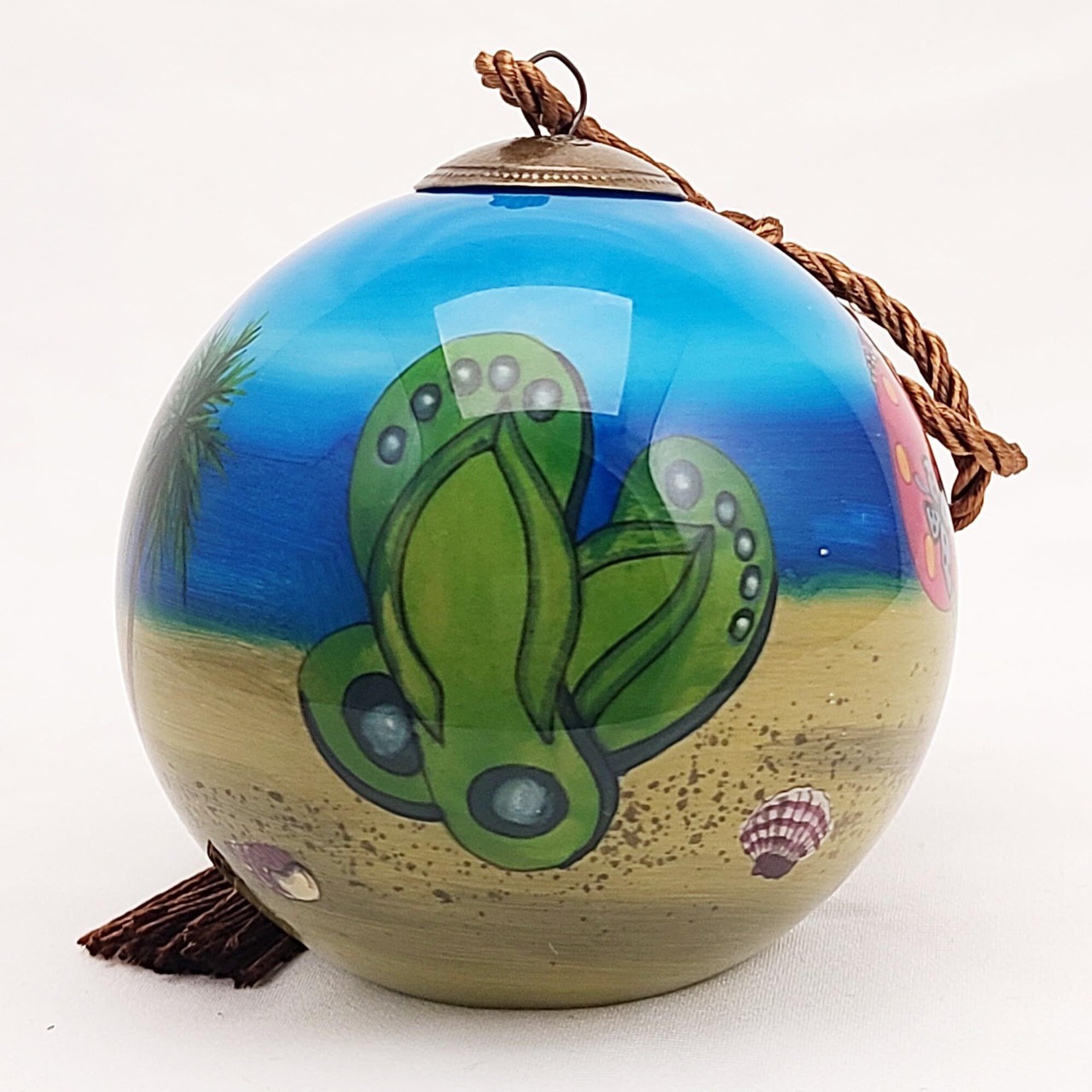 内側に描かれたガラスのボール装飾-ビーチスリッパ-家庭やオフィスの装飾のための手作りのアートワーク-休日やストレス緩和マニュアルのための完璧なオリジナルデザイン