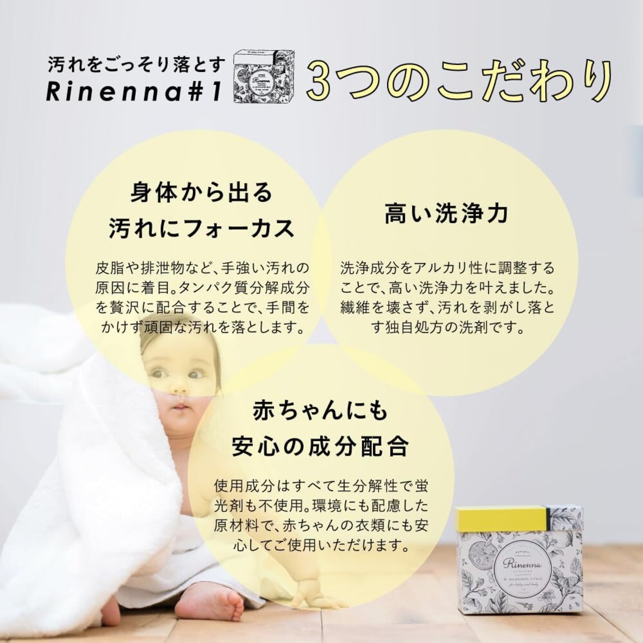 Rinenna#1(リネンナ)つけ置き洗剤 トライアル5個パック|赤ちゃんの衣類や布ナプキンの汚れ・ニオイをすっきり落とす|マンダリンシトラスの香り