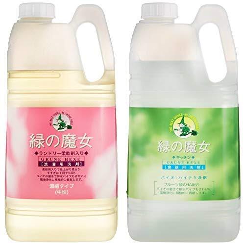 【セット買い】【大容量】 緑の魔女 ランドリー柔軟剤入り(柔軟剤入り洗濯用洗剤) 2kg 業務用 & 緑の魔女 キッチン(食器用洗剤) 2L 業務用