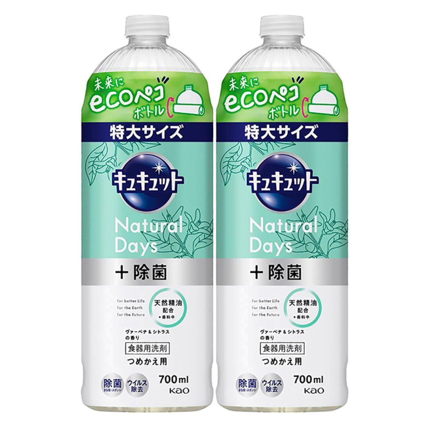 キュ キュットNatural Days+除菌 食器用洗剤 詰め替え 特大サイズ 700ml × 2個セット ヴァーベナ&シトラスの香り ecoペコボトル まとめ買い