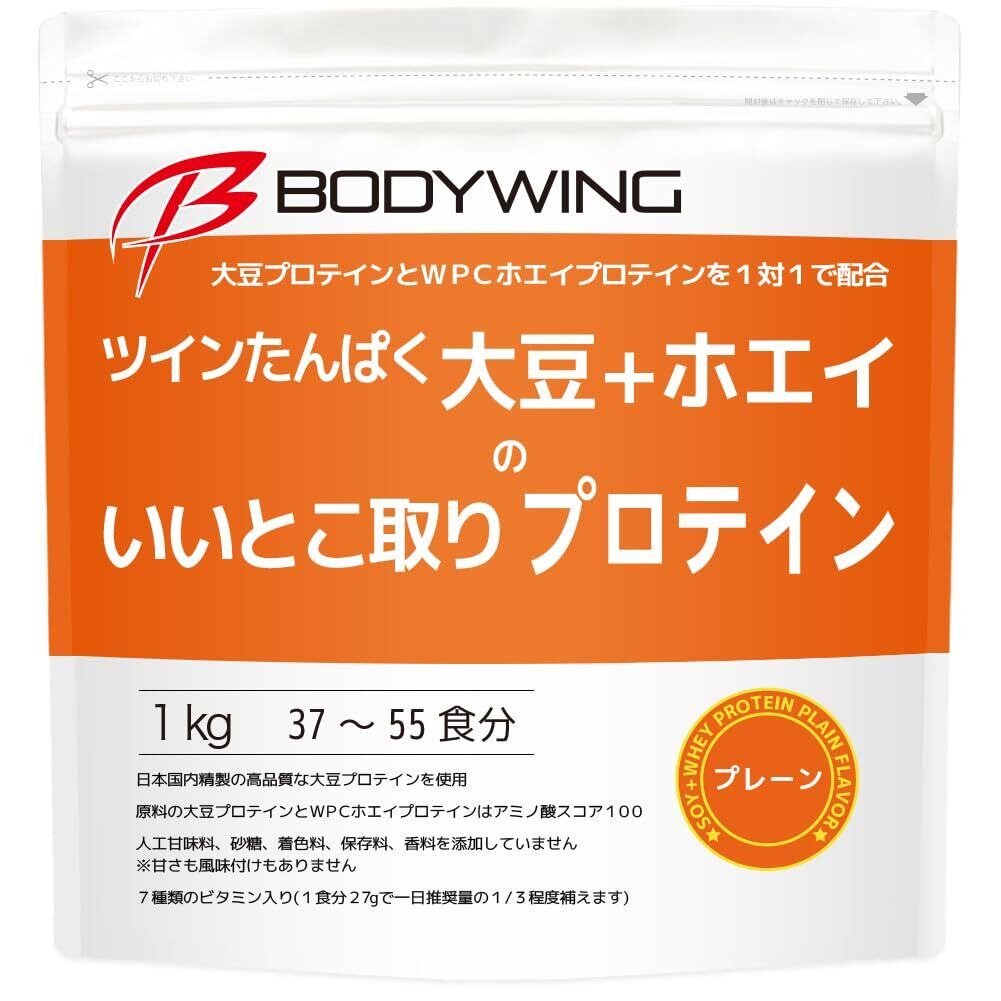 ツインたんぱく 大豆+ホエイの いいとこ取りプロテイン ボディウイング (プレーン 1kg)