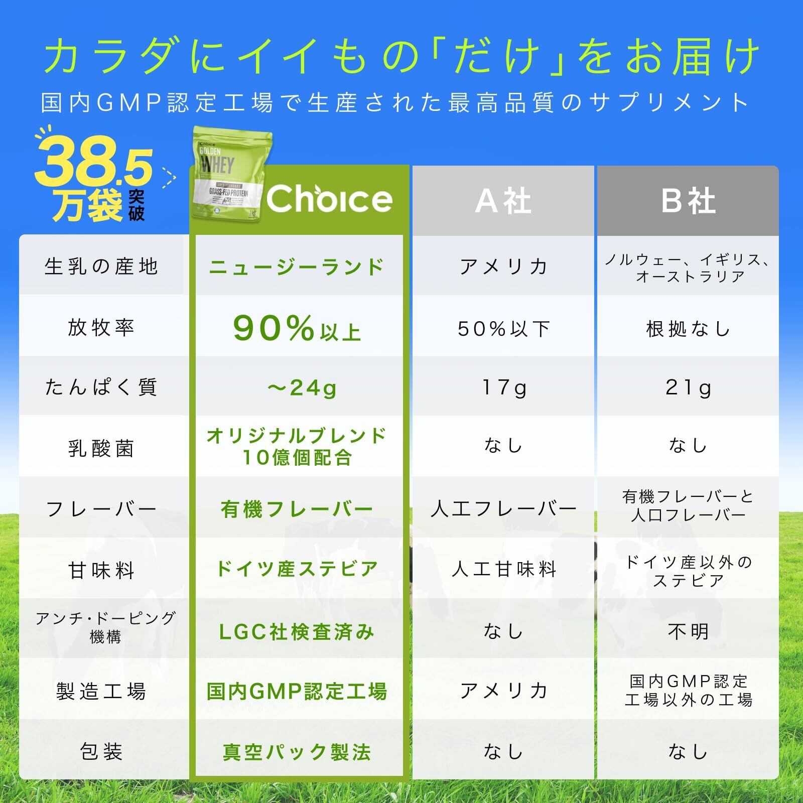 Choice ゴールデンホエイ グラスフェッド ホエイプロテイン プレーン味 1kg プロテイン 人工甘味料不使用 国内製造 乳酸菌ブレンド GMOフリー