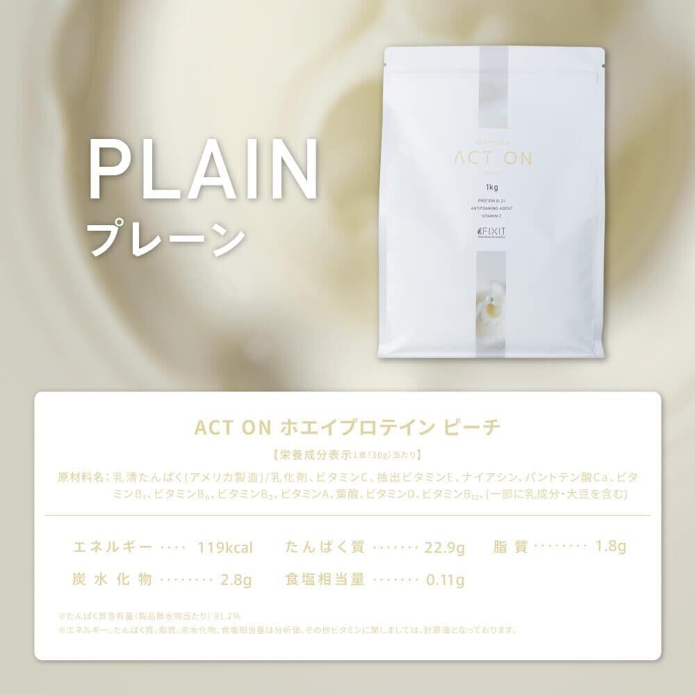 FIXIT ACTON アクトオン ホエイ プロテイン WPC 1kg ビタミン11種類配合 国内製造 1kg WPCプロテイン ぷろていん 濃厚 (プレーン)