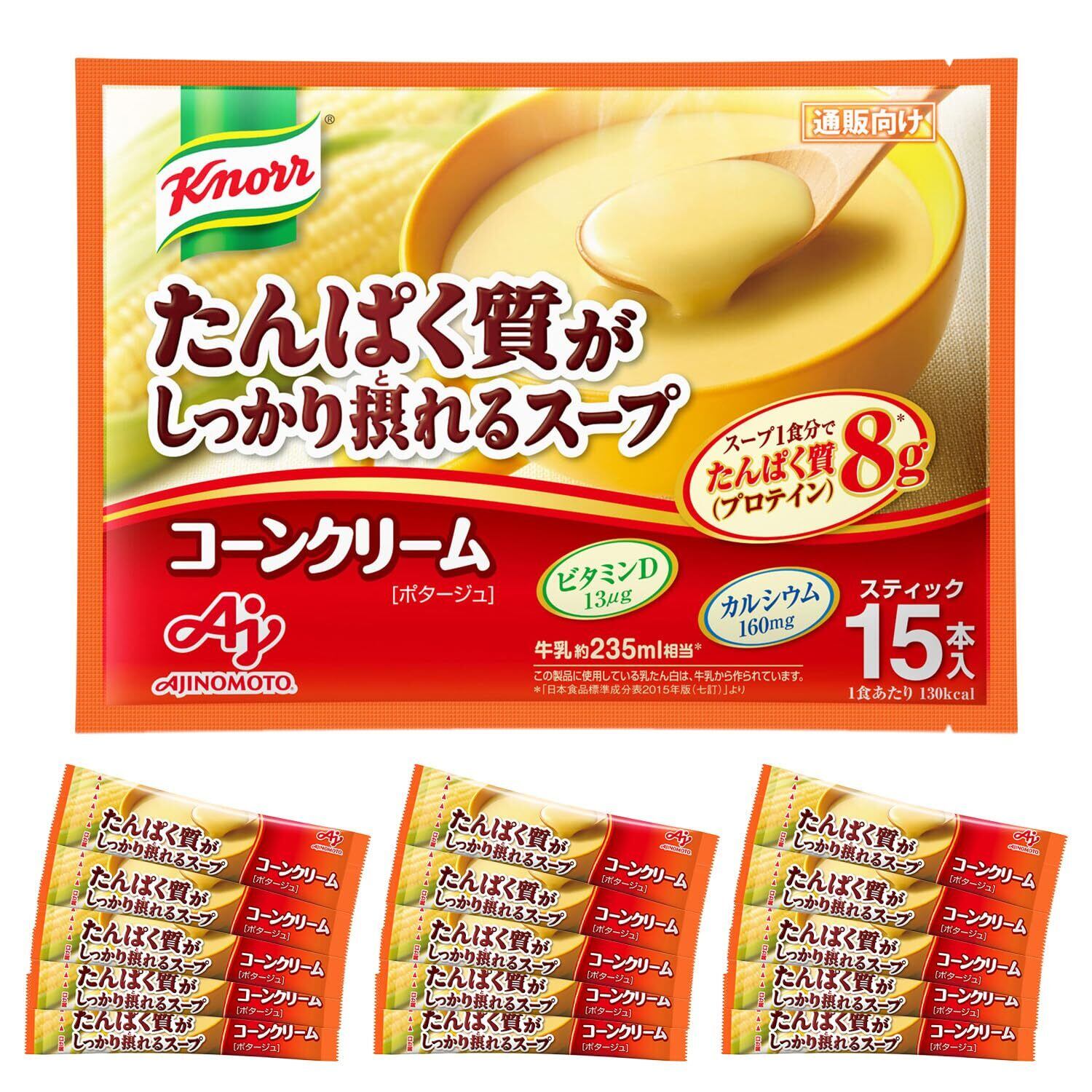 味の素 クノール たんぱく質がしっかり摂れるスープ コーンクリーム スティック 15本入(プロテイン スープ protein 高たんぱく質 タンパク質 ビタミン D カルシウム)