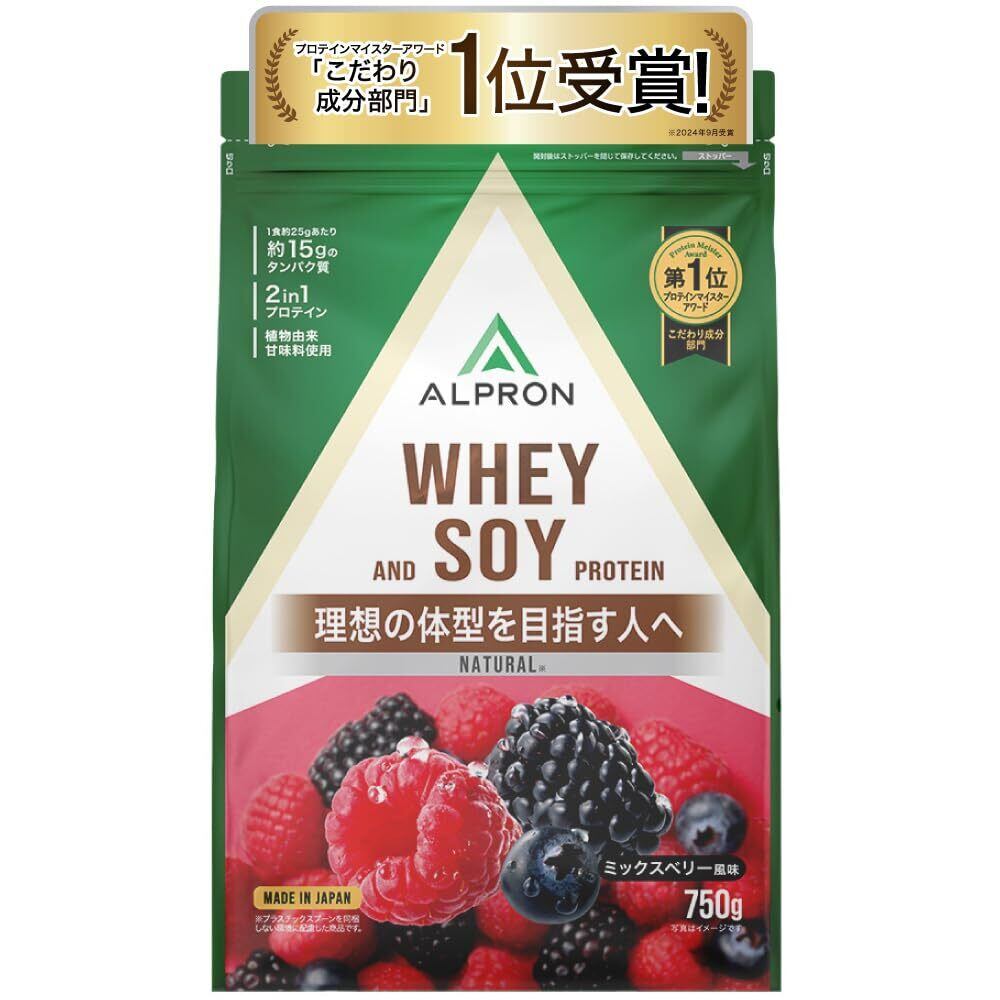 アルプロン (ALPRON Natural) プロテイン 人工甘風味料不使用 ホエイ&ソイ ミックスベリー風味 750g 国内製造