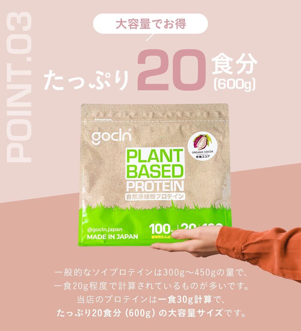GoCLN (ゴークリーン) ソイプロテイン 植物性100%原料 プロテイン 無添加 国産 ビーガン 600g 甘さ控えめ 大人味 人工甘味料不使用 (ココア味) - Plant Based Protein - Amino Acid Score 100 - Made in Japan