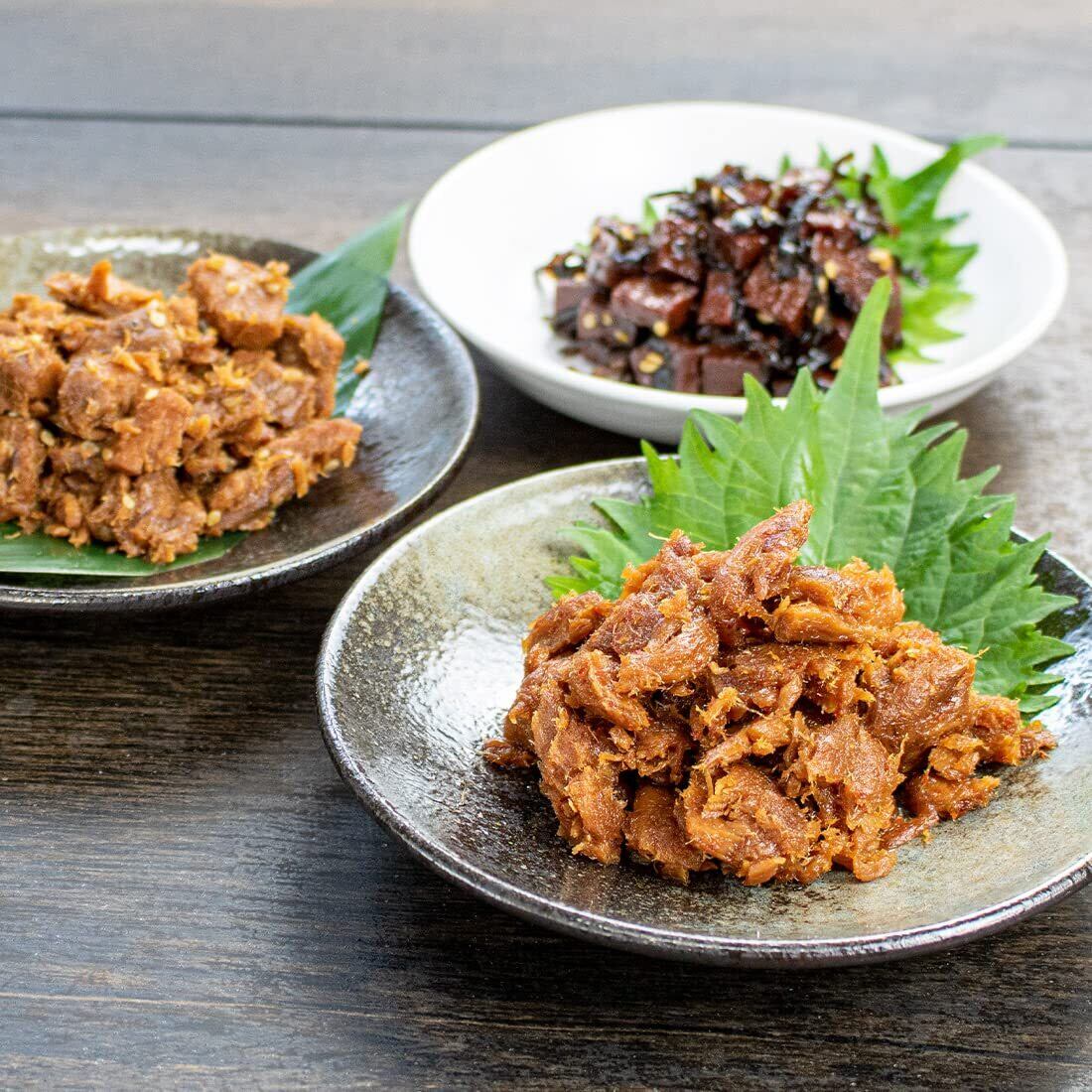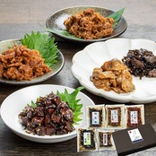 【内容量】 まぐろうま煮90g、鮪昆布120g、ピリ辛まぐろ90g、あさり佃煮100g、あさり昆布75g [化粧箱入り]