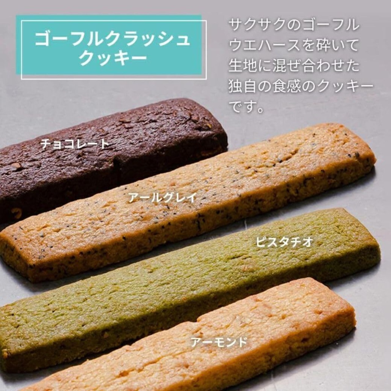 【商品名】ゴーフルクラッシュクッキー28本入り【内容量】アーモンド7本、チョコレート7本、ピスタチオ7本、アールグレイ7本