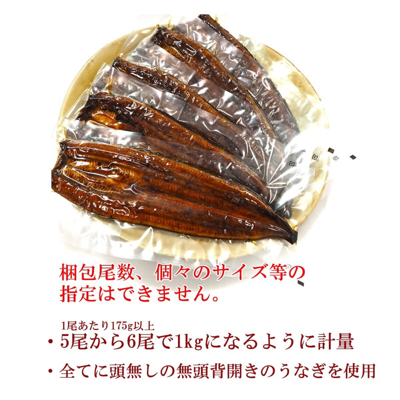 名称:うなぎ蒲焼き 内容量:うなぎ蒲焼き 175g以上 1kg(5尾から6尾) タレ・山椒15袋付き