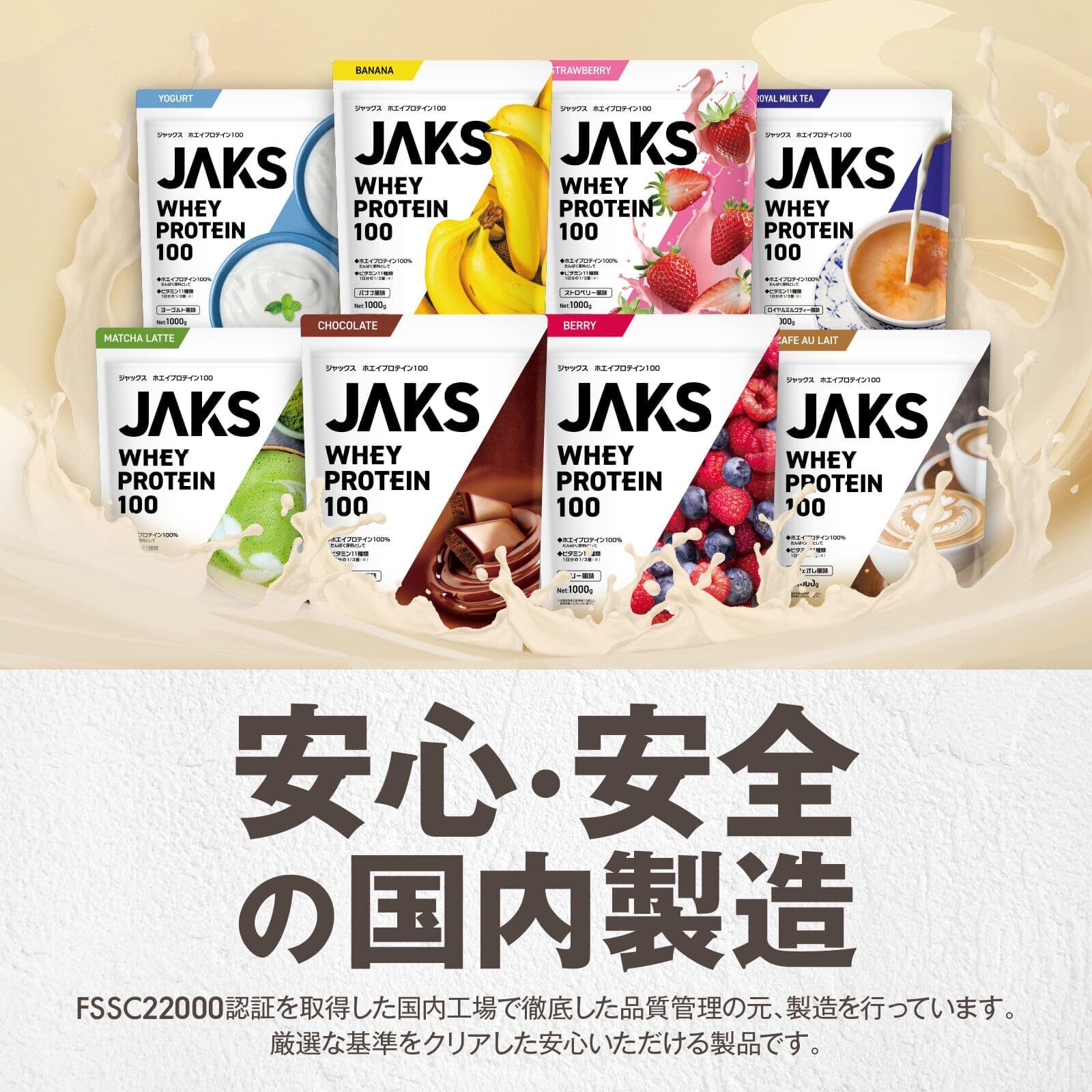 JAKS ジャックス ホエイ プロテイン 1kg 国内製造 おいしい ビタミン 高濃度ホエイプロテイン 高たんぱく質 粉末 WPCプロテイン 溶けやすい ぷろていん (1kg, バナナ風味)