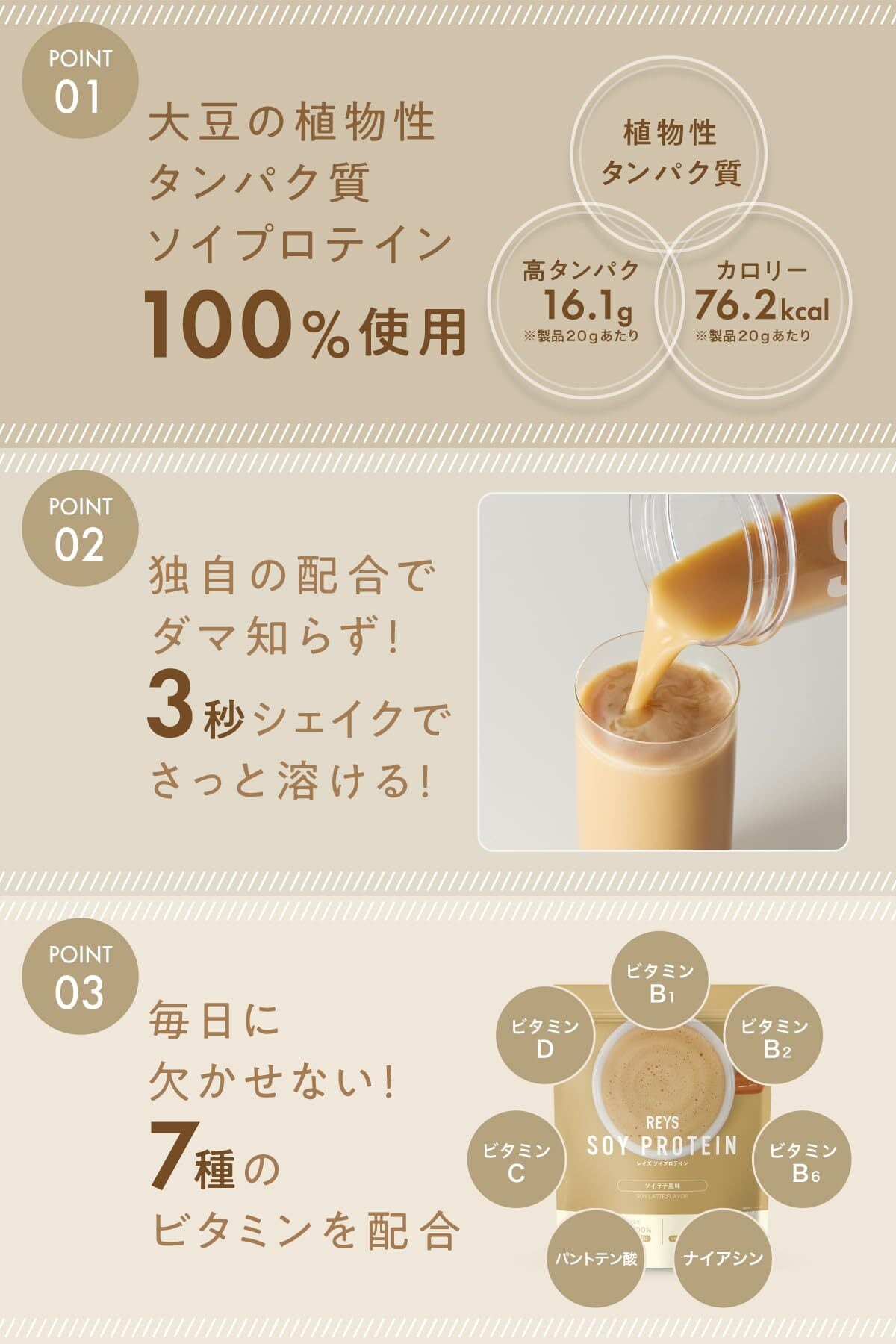 REYS レイズ ソイ プロテイン 山澤 礼明 監修 1kg 国内製造 ビタミン7種配合 SOY ぷろていん ソイプロテイン (ソイラテ風味)