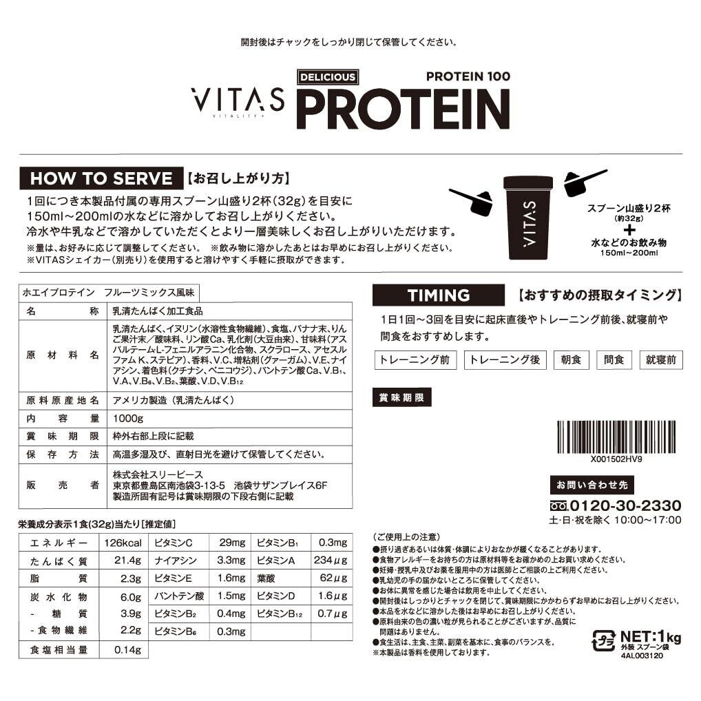 VITAS (バイタス) ホエイ プロテイン 100 フルーツミックス風味 WPCプロテイン 国内製造 1kg