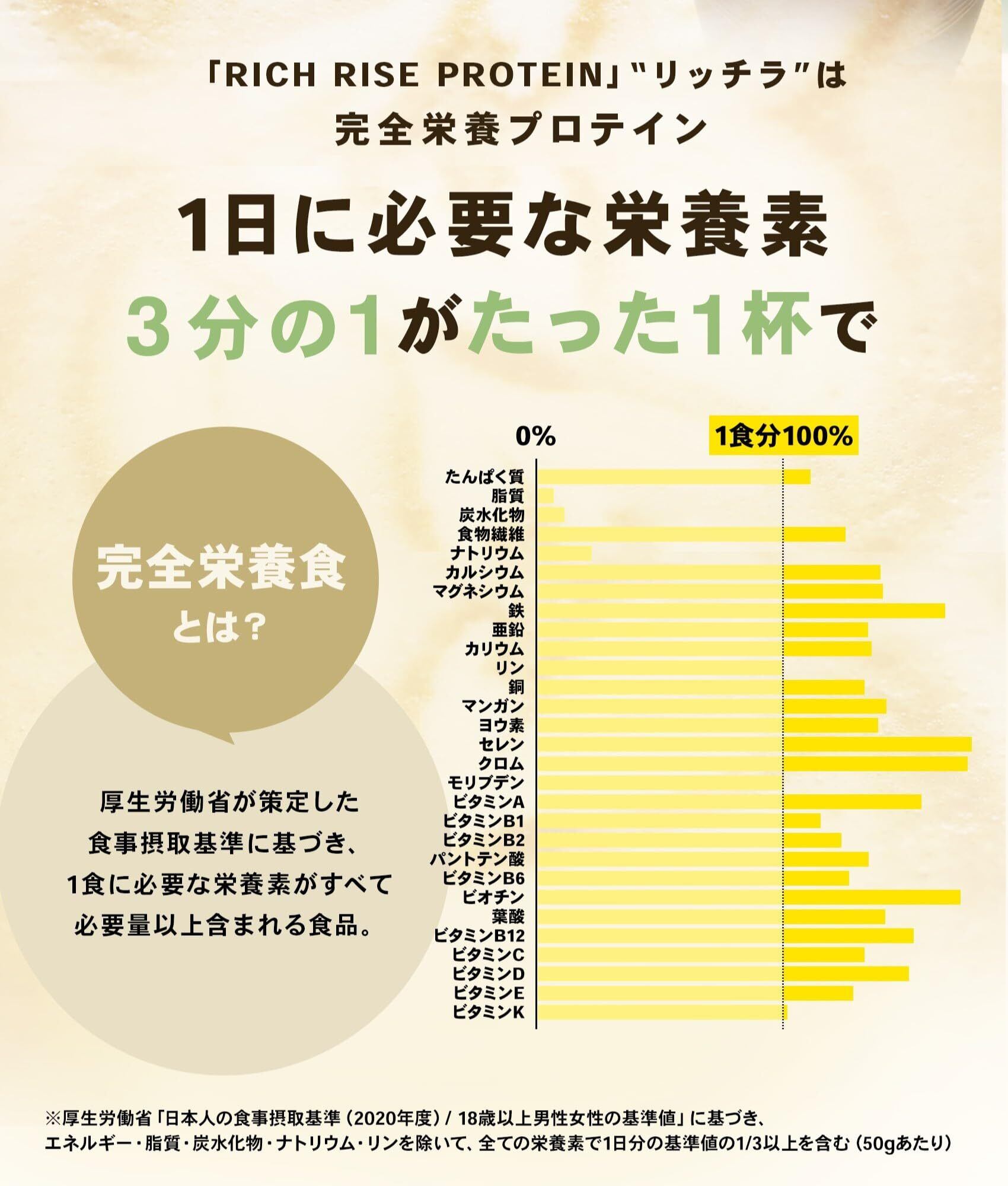 2種類のタンパク質でエネルギー補充: 体の材料となるたんぱく質の一日の摂取推奨量は、18歳以上の男性で65g、女性で50g(※2)。本製品は、吸収力に秀でたホエイプロテイン (生乳由来の動物性たんぱく質)と持久力に優れたソイプロテイン (大豆由来の植物性たんぱく質)の2種類を贅沢にハイブリッドし、1食(50g)あたり約24gを摂取できるため、不足しがちなたんぱく質を効率的に補うことができます。完全栄養食としてあらゆる栄養素を手軽に補給しつつ、ホエイ(Whey Protein)とソイ(Soy Protein)のいいところどりをこの完全食マルチプロテインで叶えられます。