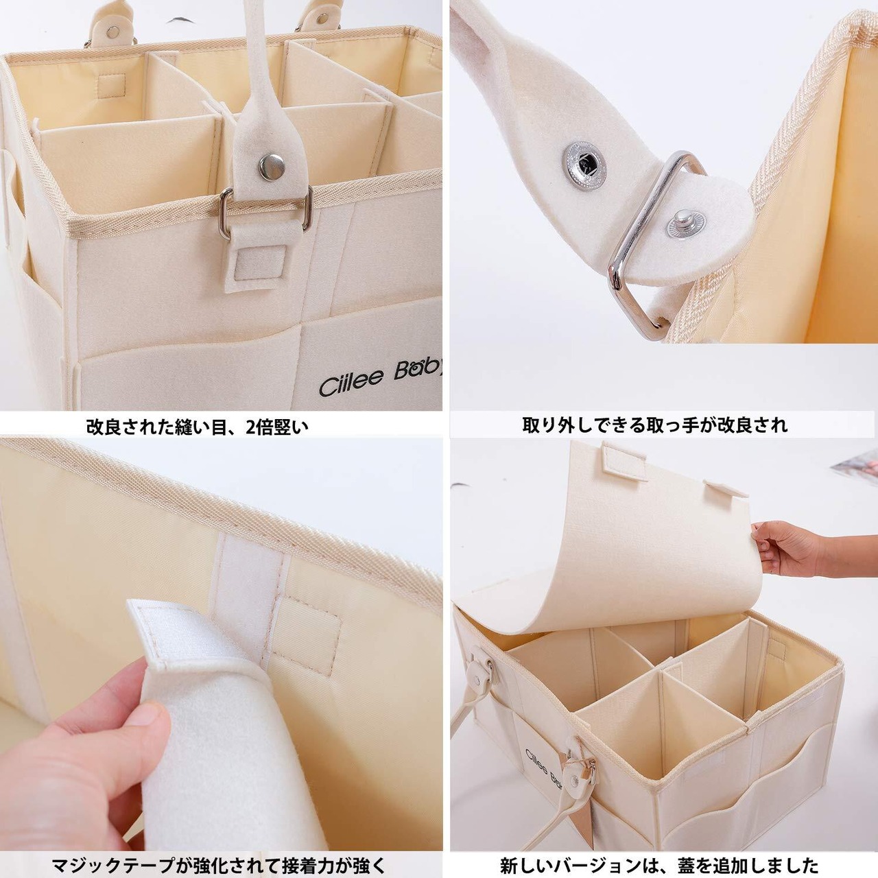 【上がったクオリティ、優れる素材】工夫した素材や技でこのおむつストッカーを長持ち可能にする、しっかりした縫い目、改良された長い淵及びダブルボトムを持っている為、このおしめ箱に思い切り収納できます。触感が抜群し、環境に優しい丈夫で軽いフェルト素材で作られるオムツ収納ケースです。ライニングを加え、バッグの形を保ち、バッグを垂直の状態で維持させる。市販のフェルトバッグより形が崩れにくいです。