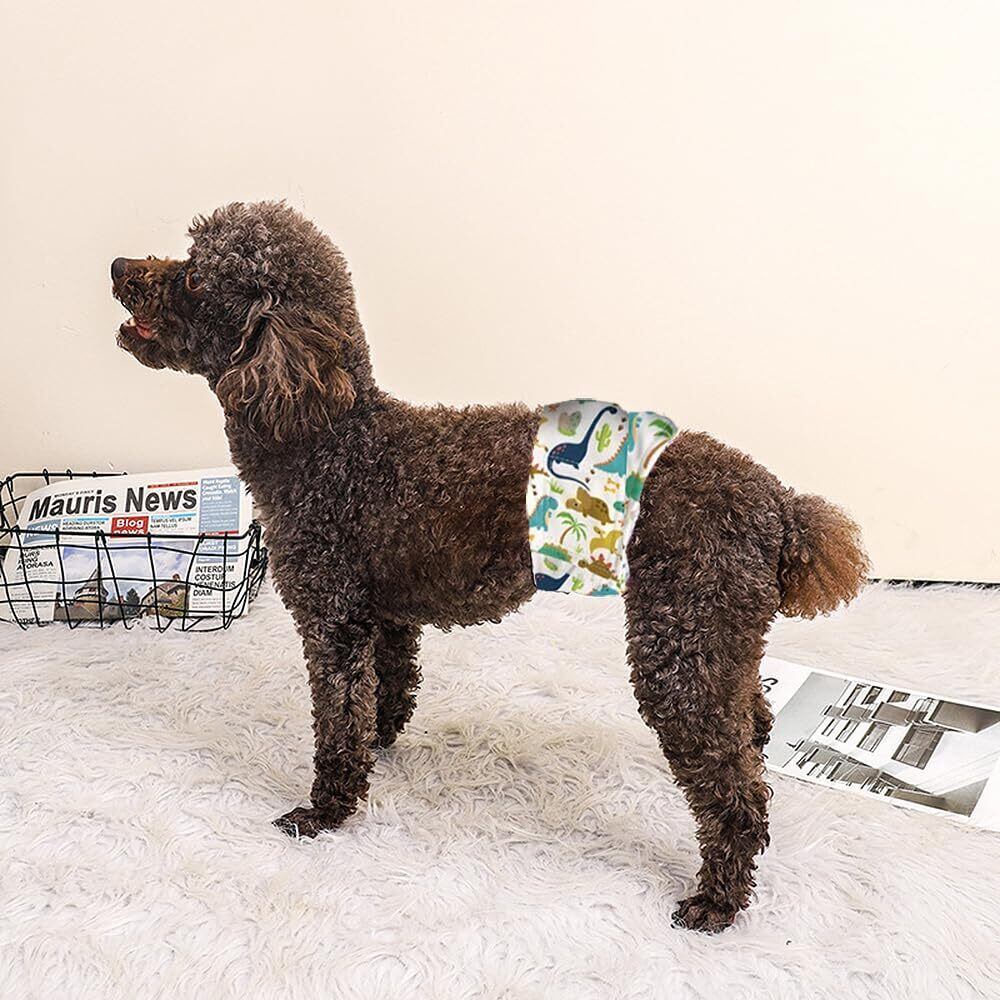 【長さ調節可能】調整用の大きなマジックテープで、愛犬にぴったりのサイズに調整できます。サイドには伸縮性があり、ワンちゃんの動きに合わせてモレを防ぎます。