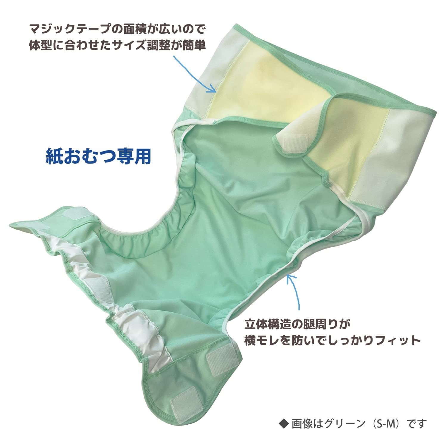 フラット型の紙オムツをやさしく体にフィットさせる紙専用のおむつカバーです。