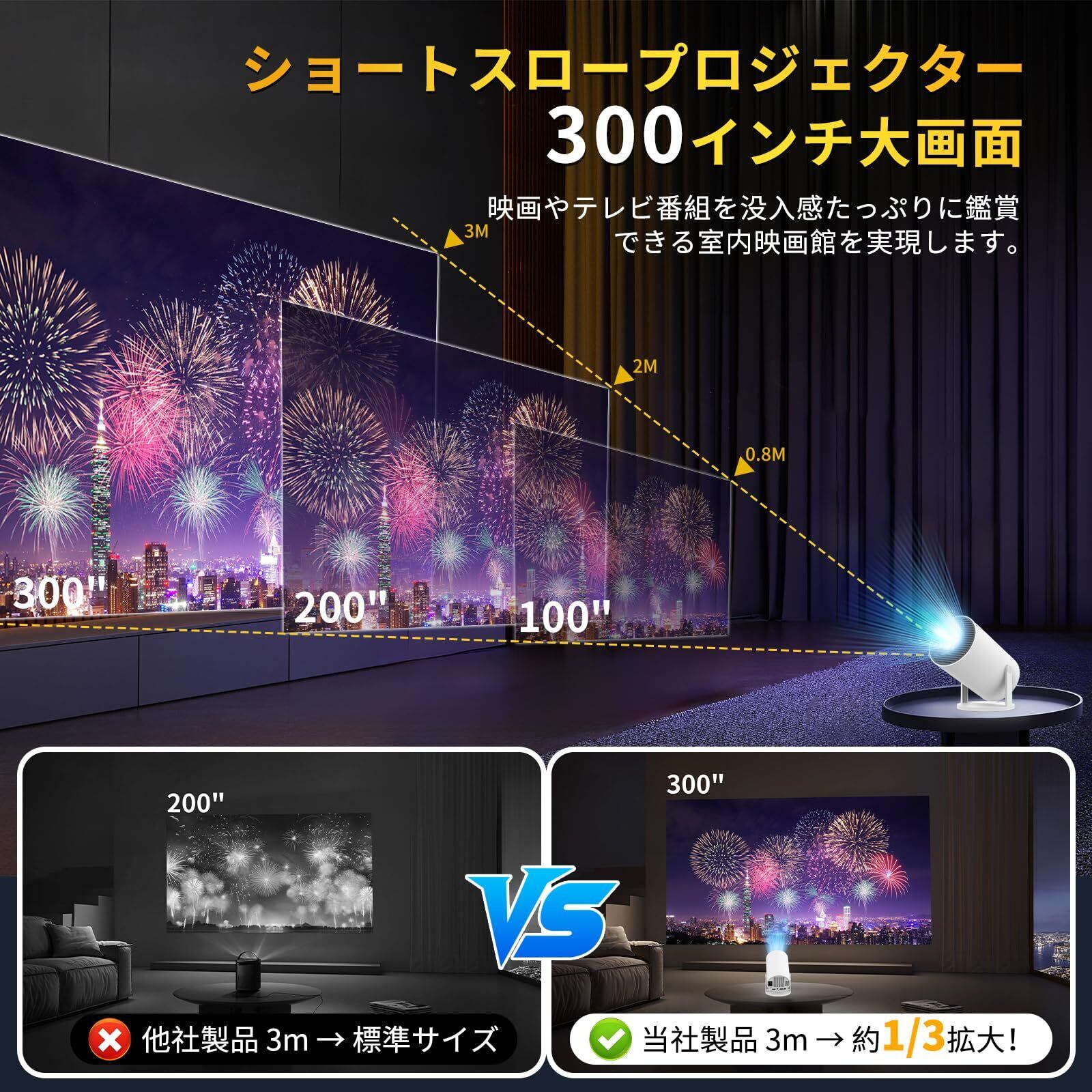 【Android TV搭載・ショートスロー・大画面】 ホームプロジェクターに内蔵されたAndroid TV12.0では、Prime Video、YouTube、Netflixを含む8,000以上のアプリから50万本以上の映画やテレビエピソードを楽しむことができます。要件に応じて Google PlayストアやApp Store から豊富なアプリをダウンロードでき、お気に入りの映画やテレビ番組を家族や友人と一緒に楽しむことができます。それ以外、 プロジェクター 家庭用 はショートスロー技術により、手軽に50インチから300インチまでの大画面で楽しめます。※アップデート時にアンインストールする必要はなく、アップデートするかどうかを選択するだけでいいです。※一部のアプリケーションや映画・テレビセレクションでは、リモコンのマウスモード選択を切り替える必要があります。