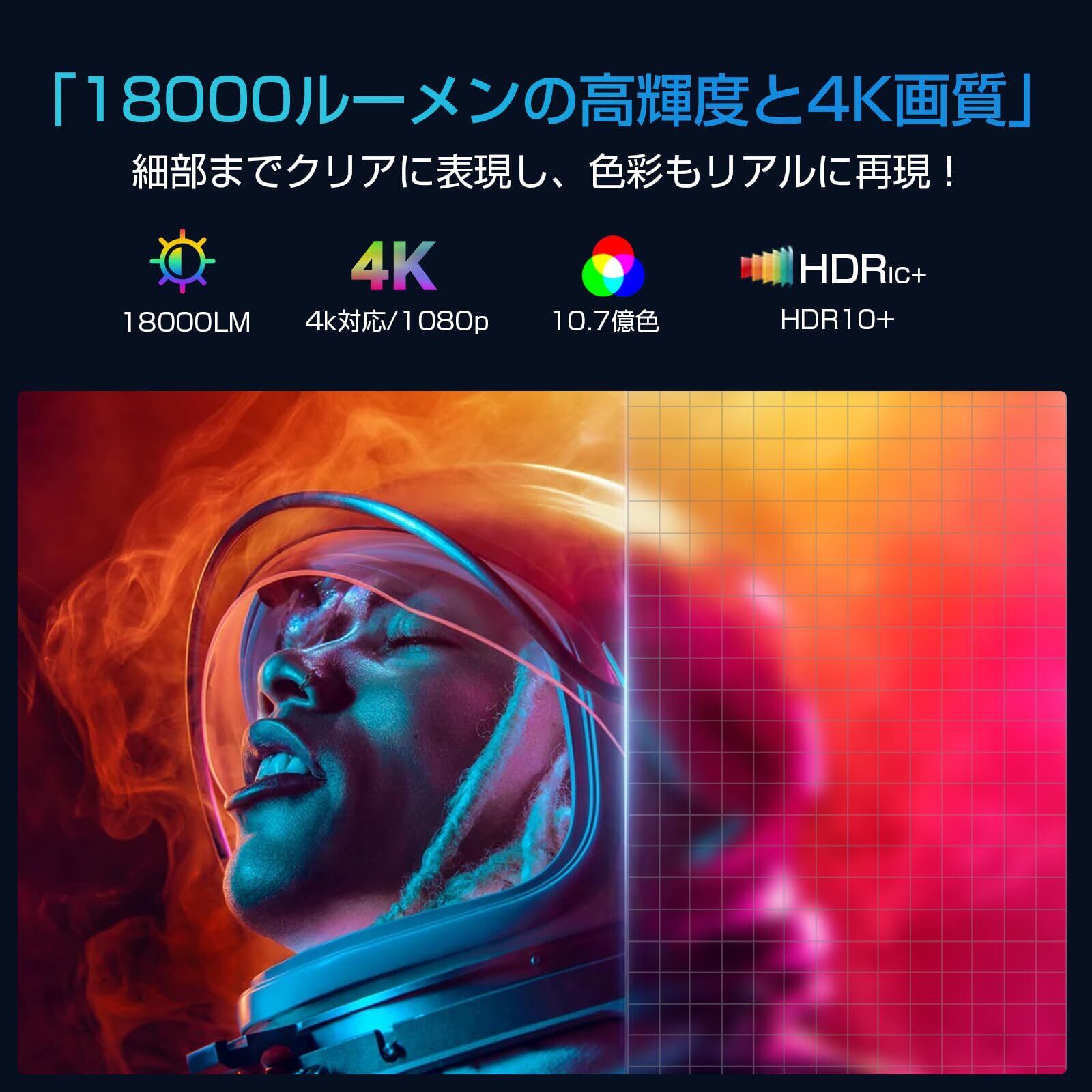 【18000LM高輝度・1080P高解像度・4K対応】 18000LMの高輝度で、昼間でも鮮やかで明るい映像を提供。1080P高解像度で細部までクリアに再現され、4K対応なので、高画質で映画やゲームを楽しめます。家庭の映画鑑賞やプレゼンテーション、ゲームプレイにも最適で、どんなシーンでも圧倒的な迫力を感じることができます。