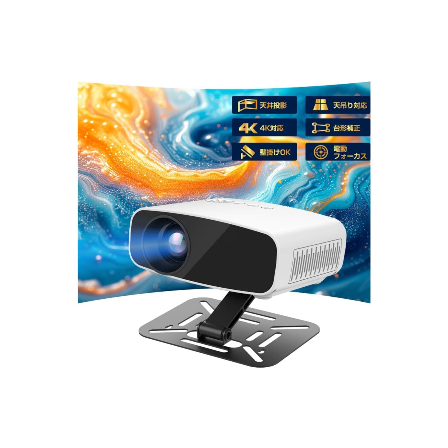 VOSCORDER プロジェクター 小型 天井投影 180°回転可能【スタンド/天吊り/壁掛け金具付き】有線ミラリング 1080P 4K対応 20000LM 家庭用プロジェクター 短距離投影 50%ズーム Bluetooth5.3 HiFiスピーカー 大画面 ホームプロジェクター スマホ/PC/DVD/Switch対応 日本語取扱説明書