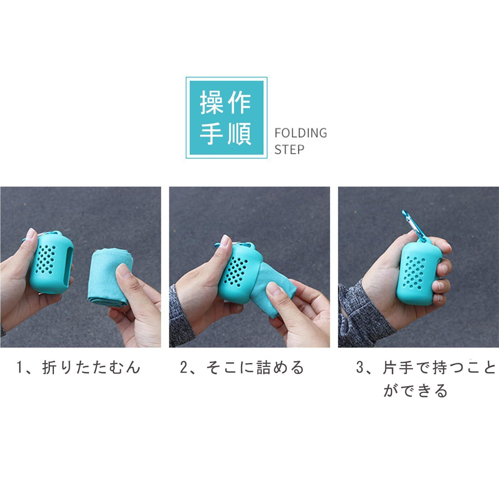 Bornoon クールタオル 速乾性タオル スポーツタオル シリコンケース付き 80×30cm ひんやり アウトドア 運動 ジム 熱中症対策 暑さ対策 軽量 速乾 コンパクト 携帯便利