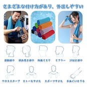 1. 瞬間冷却の4枚セット 100×30cmの大判サイズで首元から背中まで広範囲をカバー。特殊3Dメッシュ構造が水との接触で瞬時に熱を吸収し、体感温度をサポートします。繰り返し使用可能なエコ設計です。 2.蒸発冷却メカニズム マイクロファイバー素材の高吸水力が汗を素早く吸収。気化熱の原理で持続的な涼感を実現し、熱中症対策をサポート。化学物質不使用の自然冷却方式です。 3.マルチシーン対応設計 ゴルフ・マラソン・登山などアウトドア活動はもちろん、オフィスや車内の暑さ対策にも。首巻き/ヘアバンド/汗拭きと多様な使い方が可能な軽量設計です。 4.抗菌防臭&収納解決 抗菌加工で長時間使用でも嫌な匂いを抑制。洗濯機対応で手入れも簡単です。 5.実用性重視カラーバリエ ネイビー/グレー/グリーン/チャコールの4色展開。落ち着いたトーンがアウトドアからビジネスシーンまで違和なく馴染み、汚れも目立ちにくい実用デザインです。