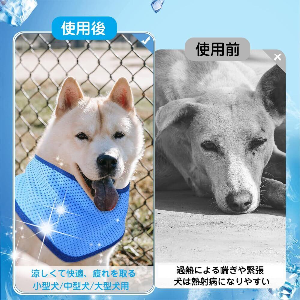 犬用クールバンダナ 犬クールネック 犬用冷感リング ペット用冷却首輪 犬用クールスカーフ 冷却タオル ペット用冷感首輪 冷却スカーフ 涼感ボーダー 暑さ対策グッズ 冷やす 軽量 調節可能 簡単装着 熱中症対策 ネッククーラー お散歩 夏用品 犬猫兼用(1個ブルー) (Lサイズ)