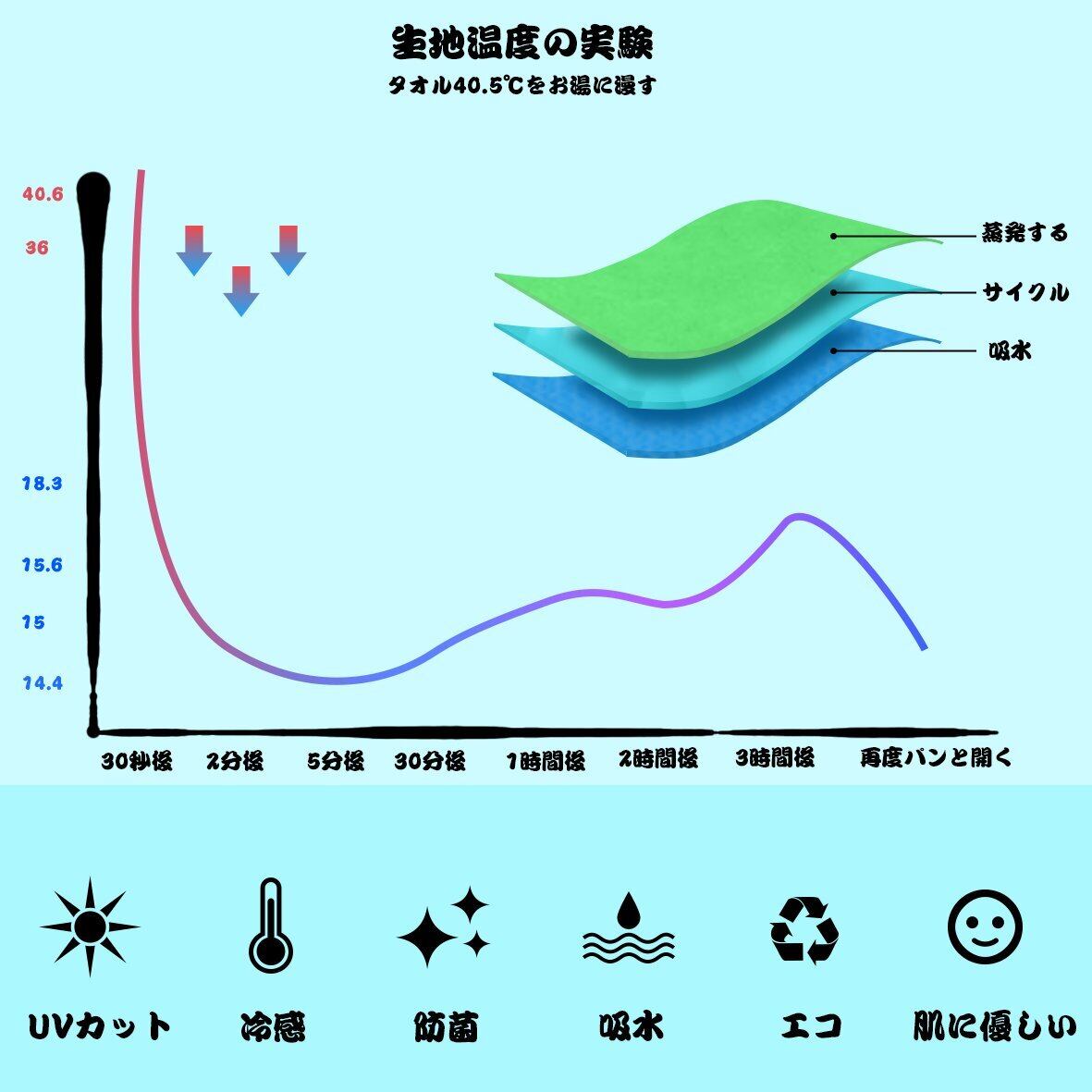ハイテク - 超時間で冷感を感じることができます。 もし温暖が温くになったら、タオルを振るだけで改めて冷感を感じることができます。