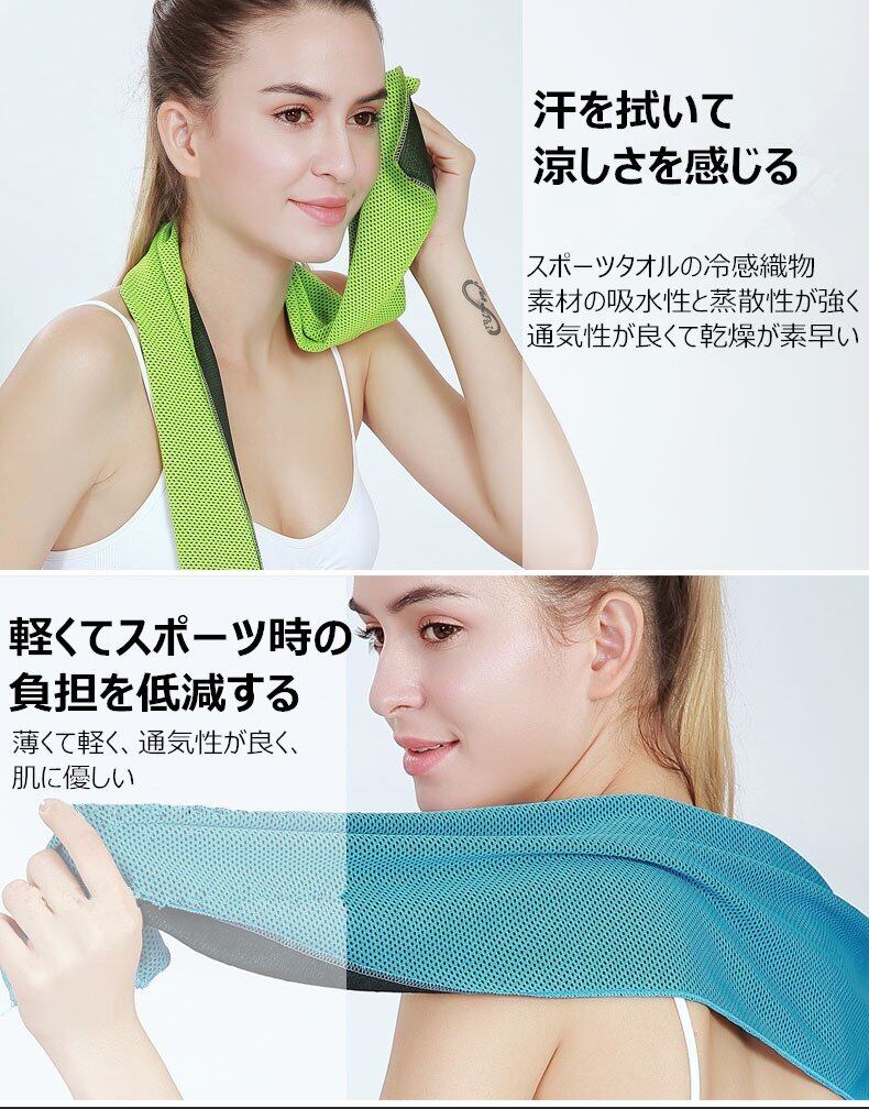 【冷感 超吸水 速乾】100%冷感繊維材質ですので、冷感を長く持って吸水率も強いです。熱中症対策でき、アウトドアと室内運動にも最適です。それに、速乾性にも優れているので、タオルが乾きにくいという問題が発生しません。