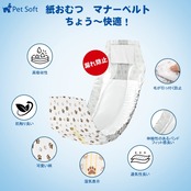 製品仕様:XS、S、M、Lの4サイズからお選びいただけます、ご購入前、必ずサイズ表で愛犬のサイズを確認してください、XS本体サイズ:約41×16cm、吸収部サイズ約:約20x8cm、S本体サイズ:53×18cm、吸収部サイズ:約24x10cm、M本体サイズ:62×18cm、吸収部サイズ:約28x10cm、L本体サイズ:77x18cm、吸収部サイズ:約30x10cm、マジックテープ式なので、固定用のマジックテープは大きくて、愛犬に適切なサイズに調整できます、伸縮性の縁で、わんちゃんの動きにもピッタリフィットします