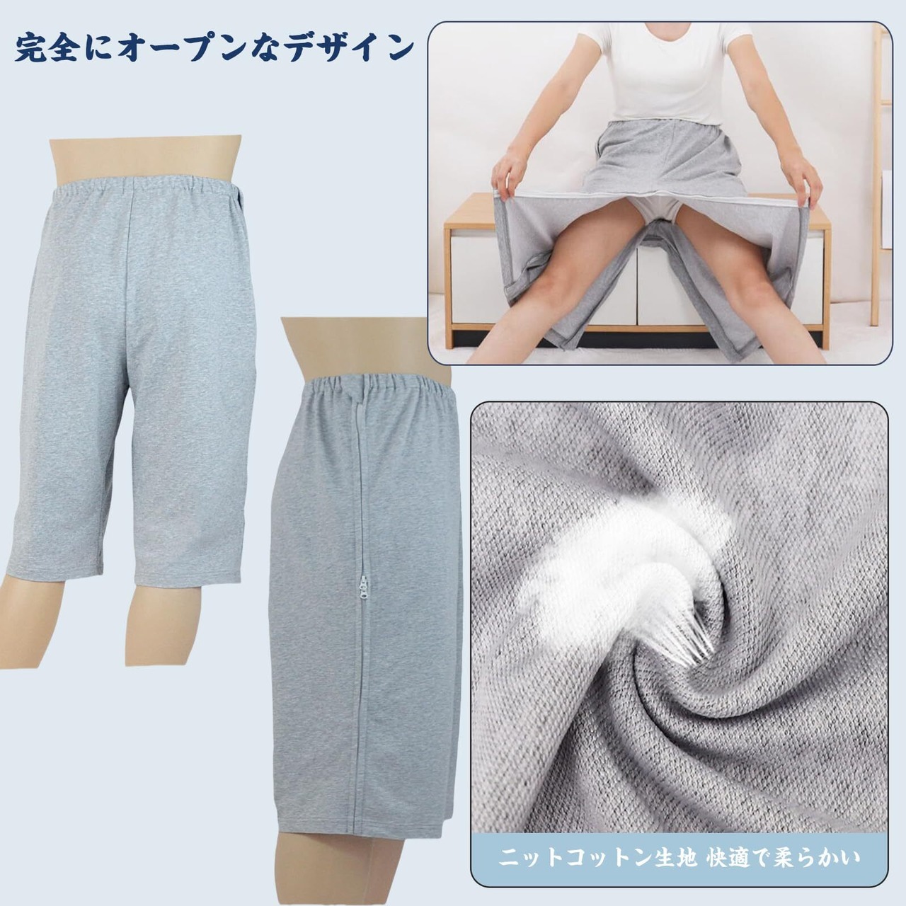 WEEOATAR 介護用パンツ 通年用 介護ゆるゆるなズボン セミオープン おむつ交換 普段着 骨折する 腰開 ジッパー 寝たきり 術後 入院 おむつ交換 お着替えサポート M
