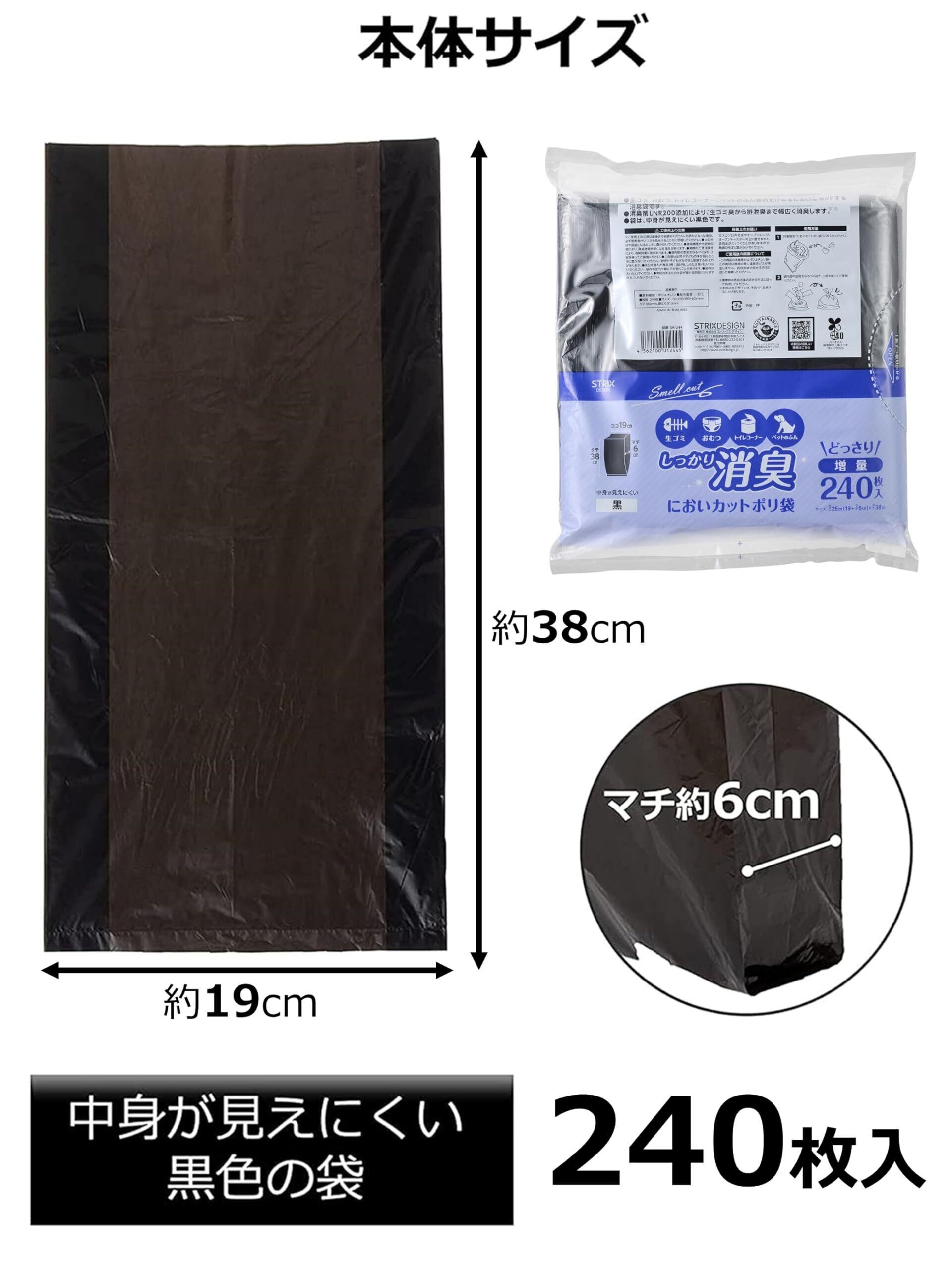 ストリックスデザイン 消臭袋 ポリ袋 240枚 黒 しっかり消臭 においカット ゴミ袋 生ゴミ トイレコーナー おむつ SA-244