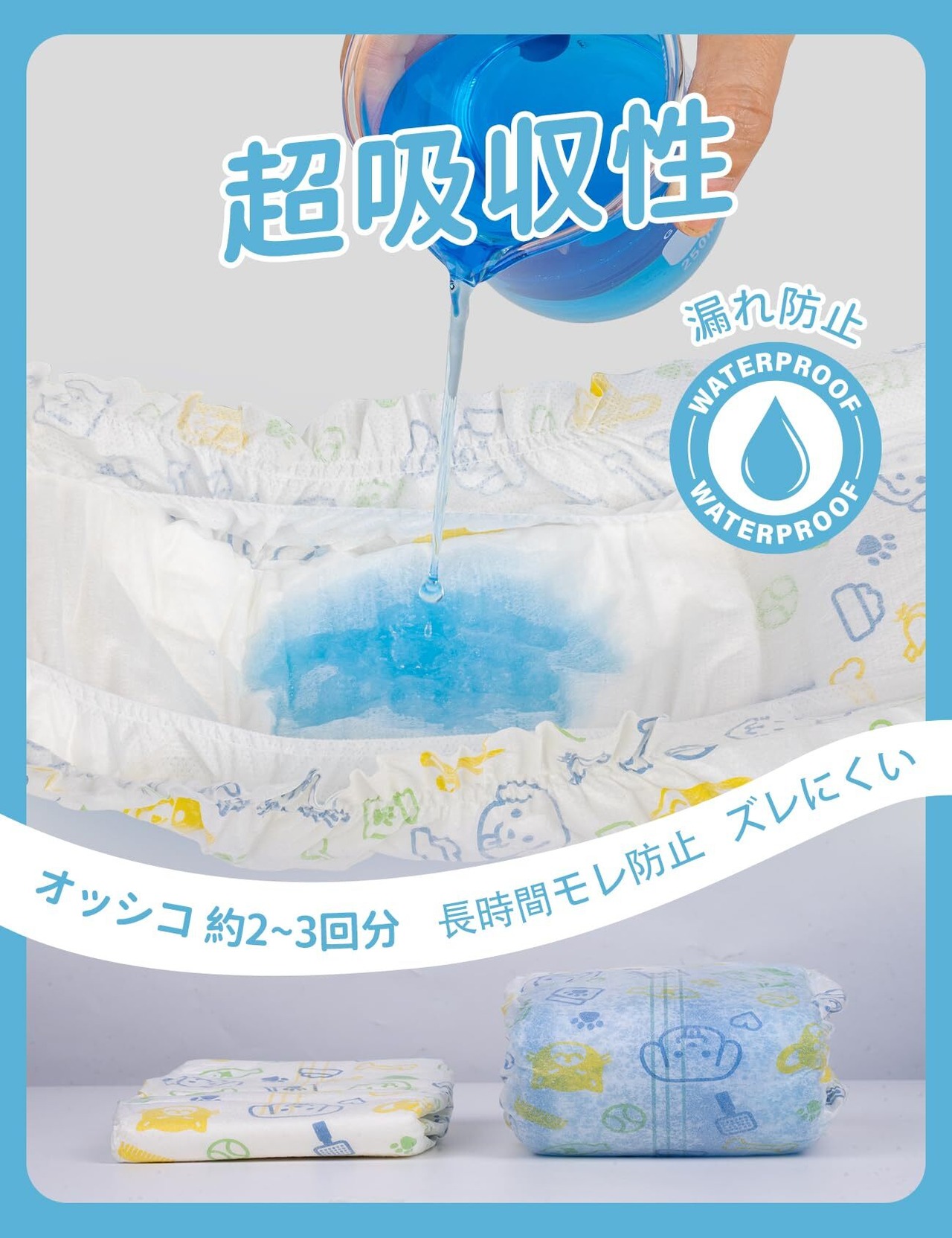 1パックで2色:男の子用マナーおむつは2色柄のデザインをしました、同じパッケージの中に、オムツが2色入っています、パック毎に青い柄12枚、かわいい動物柄12枚、爽やかな色が可愛くてご愛犬に似合います。