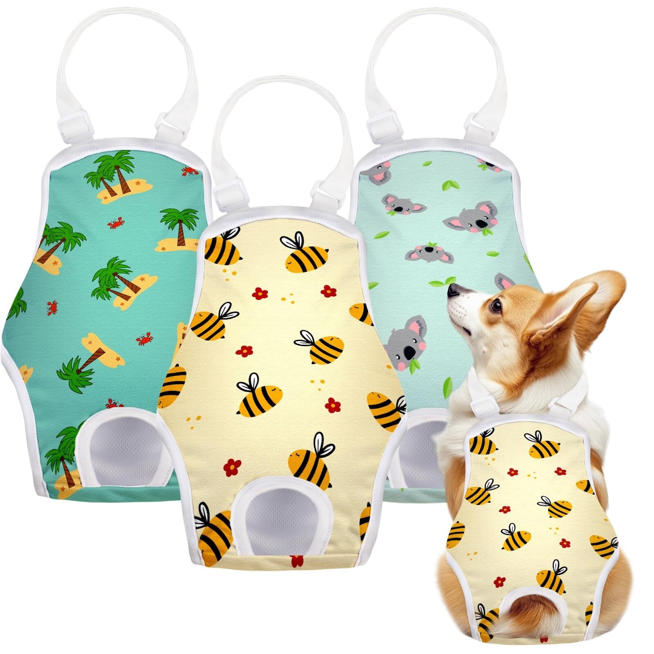 調節可能なサスペンダーが付いている 3 パックの洗濯できる女性犬のおむつの Onesie 衛生パンティー M Cute Pattern