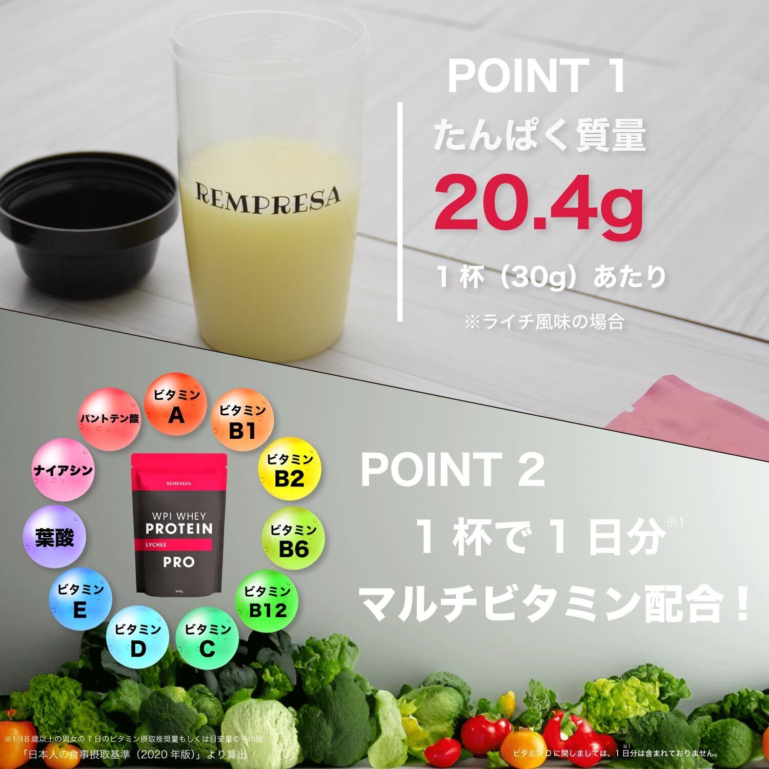 REMPRESA レンプレッサ WPI ホエイ プロテイン マルチビタミン11種配合 ライチ味 [1杯当たり タンパク質 20.4g] ぷろていん