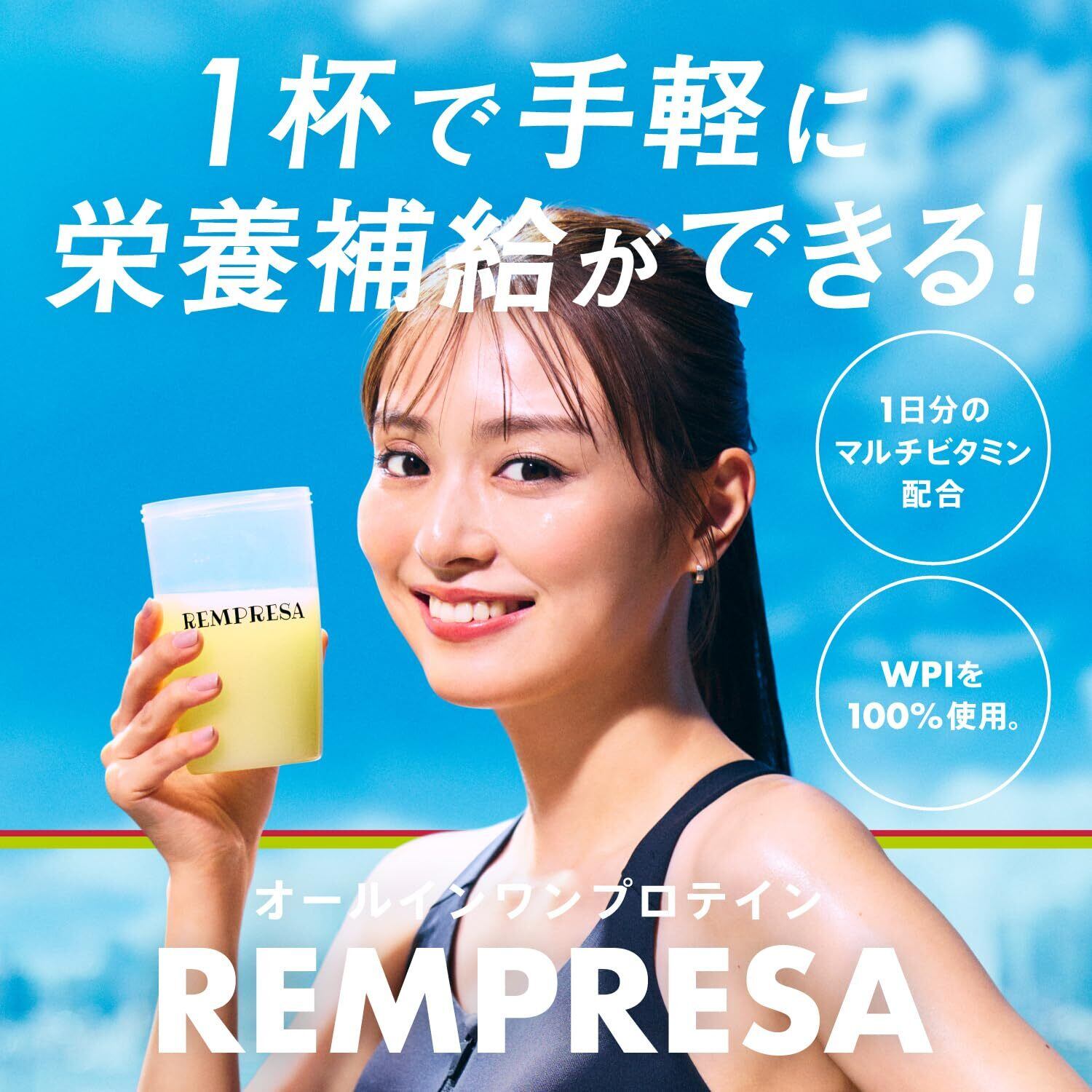 REMPRESA PROはWPIを100%使用し、1日分のビタミンを配合したオールインワンタイプのホエイプロテインです。