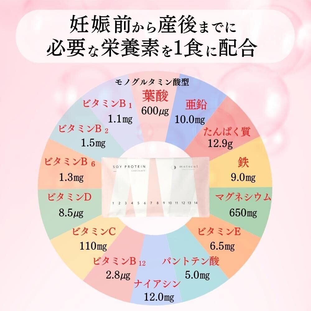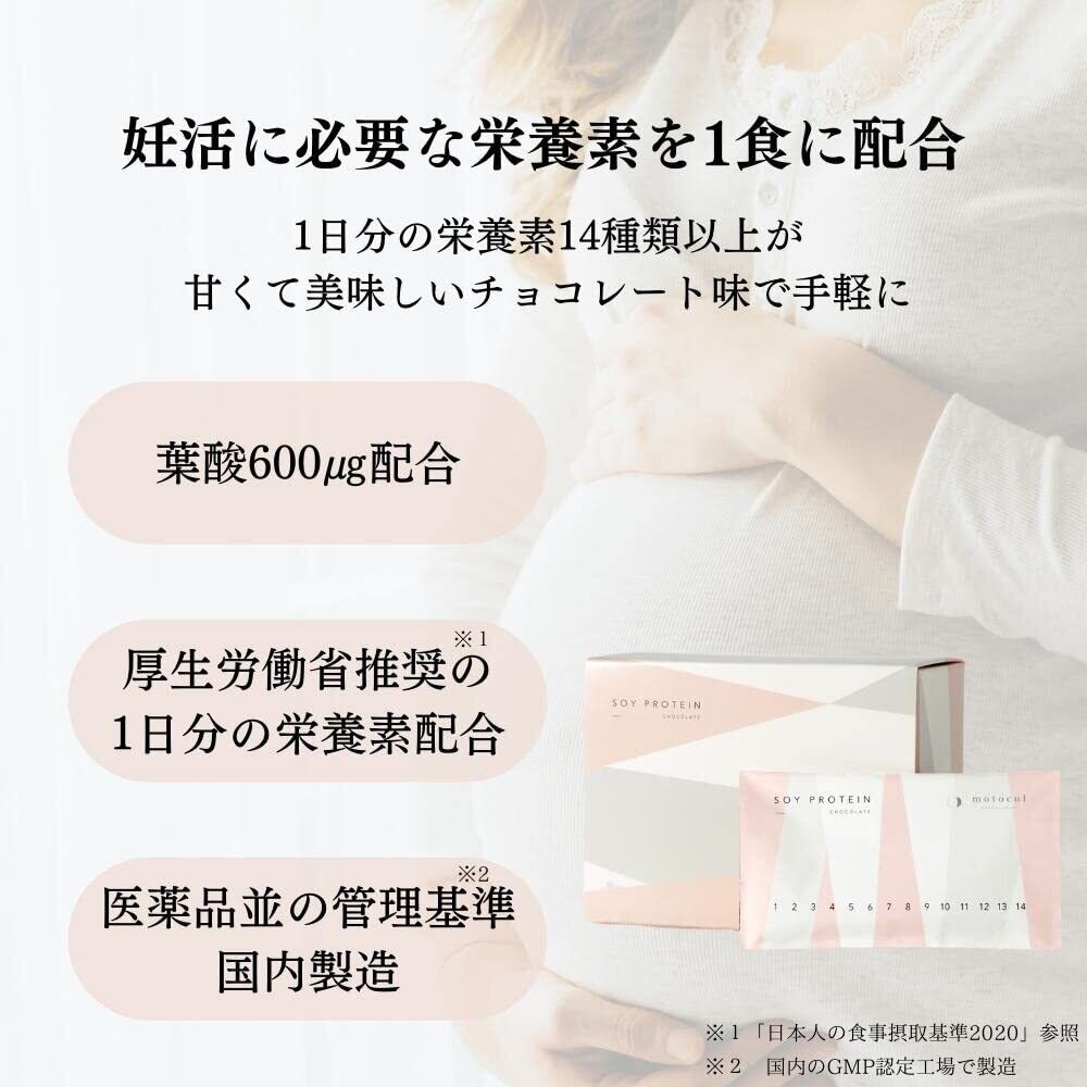 妊活プロテイン モトクル チョコレート味 葉酸 600㎍ ビタミン 亜鉛 カルシウム 鉄 16種類 栄養素 配合 人工甘味料不使用 ソイプロテイン 2週間分