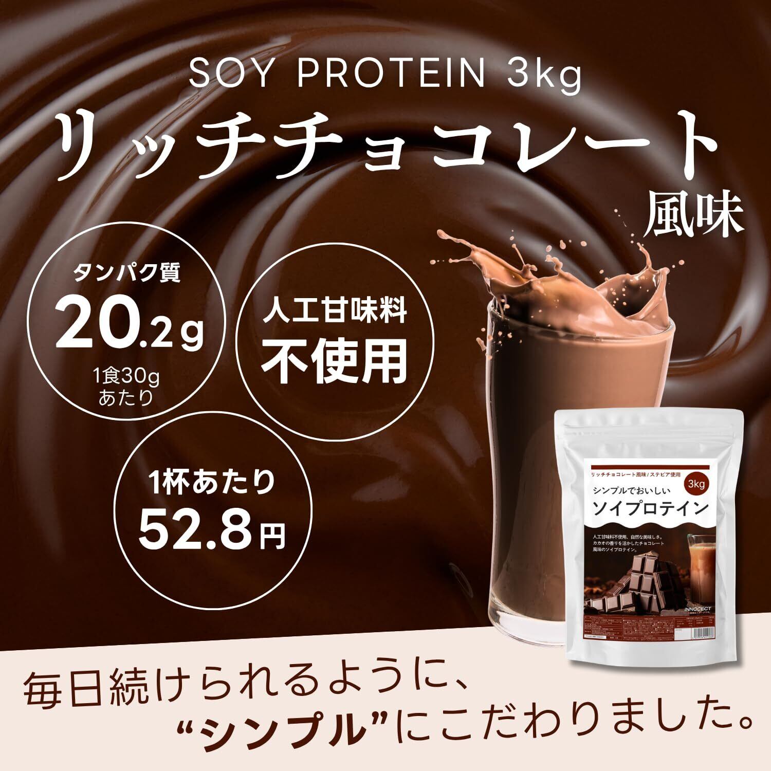 【リッチチョコレート】ソイプロテイン 3kg 人工甘味料不使用 シンプルでおいしい ステビア 国内製造 アミノ酸スコア100 大容量 ぷろていん INNOCECT イノセクト