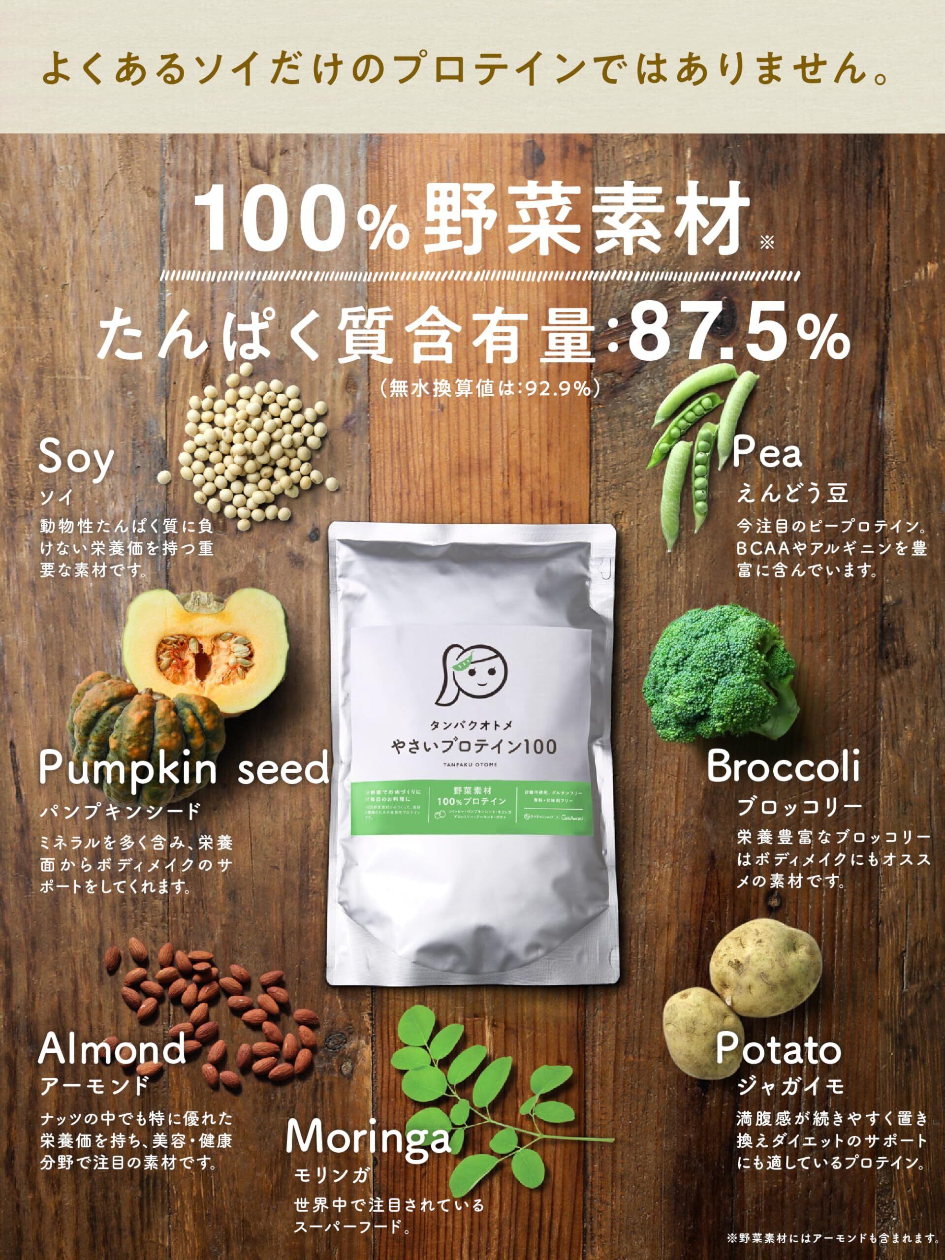 タマチャンショップ タンパクオトメ やさいプロテイン100 300g 植物性たんぱく質(大豆・えんどう豆・モリンガ) 無香料・無加糖・保存料不使用 国内製造 ヴィーガン対応